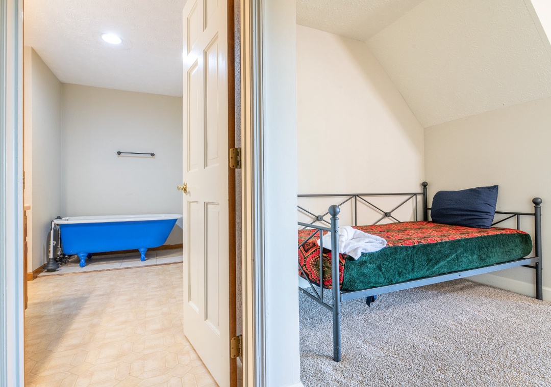 ✔ Bedroom #4 (Upper Level): Inviting Bedroom with a Full Bed, a Twin Bed, and a Flat-screen TV; Access to a Full Bathroom with Stand-up Shower and Claw Foot Tub