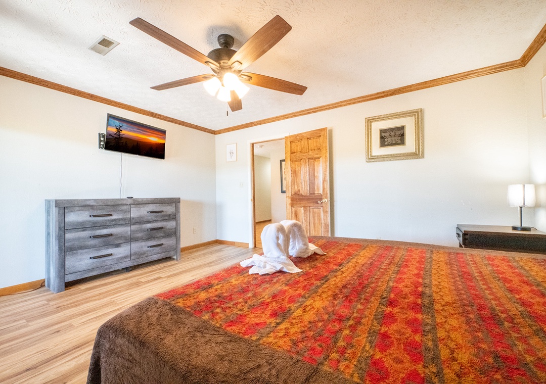 ✔ Bedroom #6 (Upper Level): Spacious Bedroom with a King-size Bed and a Flat-screen TV