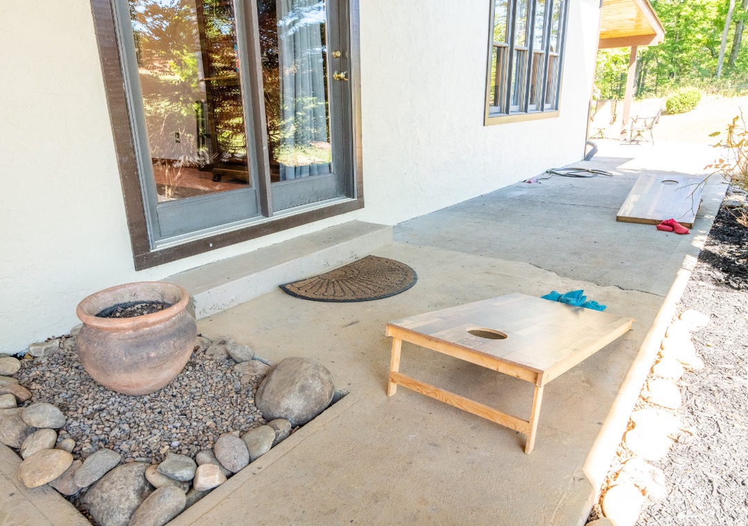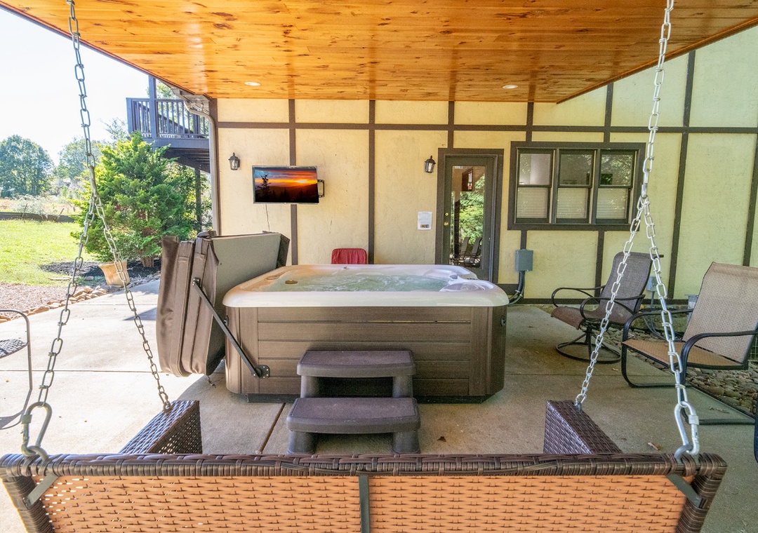 Whether you're looking for indoor or outdoor excitement, our lodge has it all. One of the highlights is the dedicated theater room, which features a massive 75" Sony Smart TV. It's the perfect spot for a cozy movie night with friends and family. Step into the game room and feel the arcade atmosphere with a multicade machine that brings a selection of classic games to your fingertips. The game room also boasts a pool table, giving you the chance to test your skills in a friendly competition. If you’re looking to unwind with some lighthearted fun, the dart board offers a more relaxed challenge, while outside, you can enjoy a couple of rounds of Cornhole with friends on the two boards provided. For those who love spending time outdoors, Peachtree doesn't disappoint. Just to the right of the back patio, there’s a park-style grill for those who want to show off their barbecue skills. In the evening, you can gather around the wood firepit located behind the property to the left, perfect for roasting marshmallows or swapping stories under the starlit sky. The outdoor fun continues with a relaxing hot tub on the left side of the cabin, providing a perfect way to wind down after a day of activities.