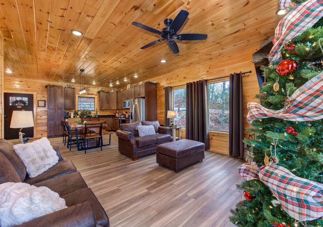 From the moment you step inside, “Pine Haven Cabin” feels warm, open, and inviting. Our floor plan is ideal for families and groups alike and is the perfect get-a-way, so pack your bags – because the mountains are calling!