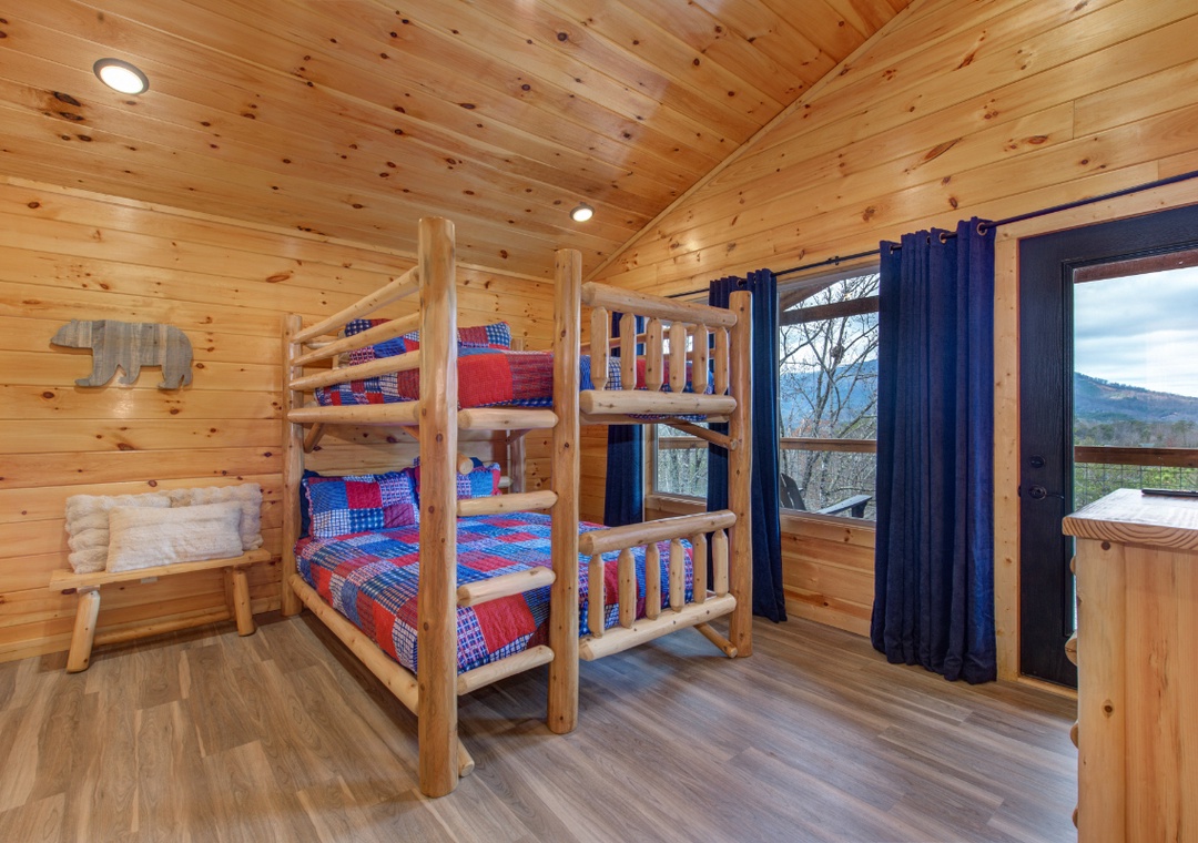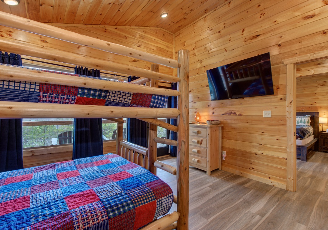 ✔ Bedroom #3 (Upper Level): Inviting Bedroom with a Queen-over-Queen Bunk Bed and Flatscreen TV; Attached Full Bathroom with Shower/Tub Combo