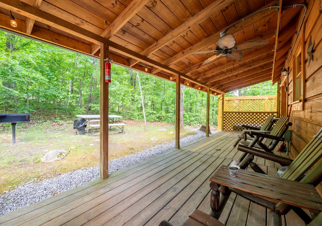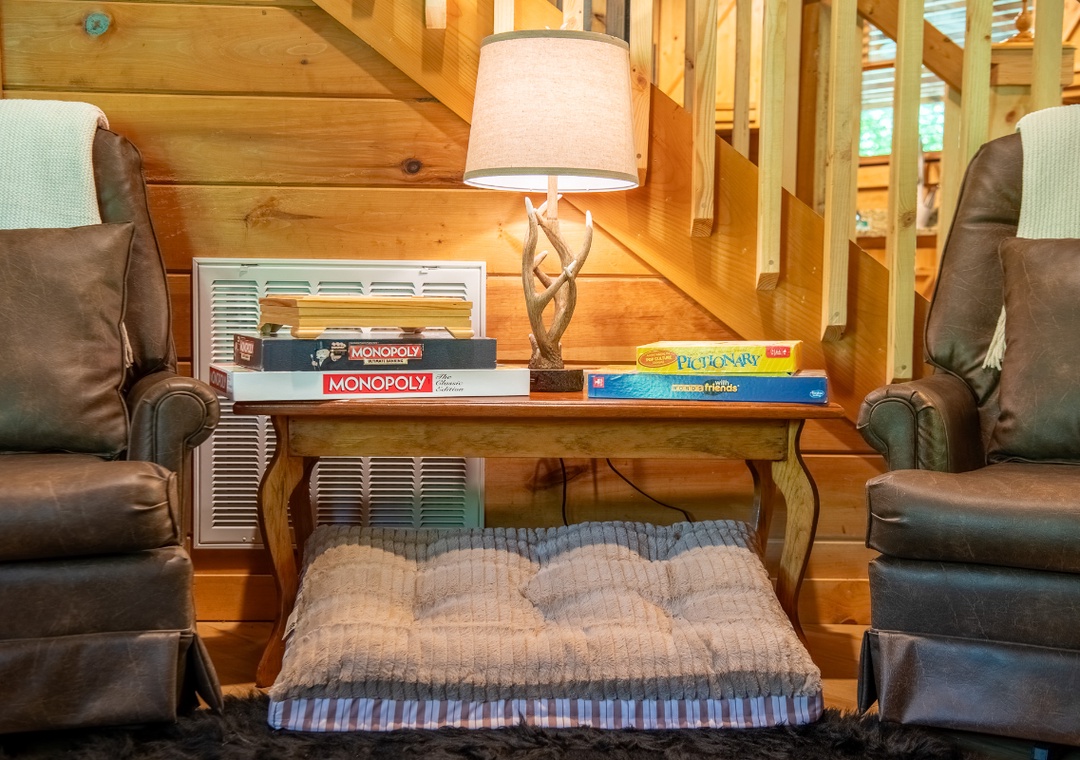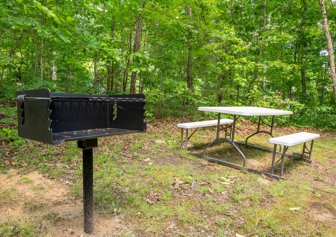 In the living room, a cozy electric fireplace adds ambiance during cool mountain evenings. A large 50" TCL Roku TV offers endless streaming options, perfect if you want to catch up on your favorite shows, enjoy a movie night, or simply relax after a day of outdoor adventure. Upstairs in the loft, you'll find a fun multicade arcade machine loaded with classic games. This will surely be a hit with both kids and adults, offering hours of fun. Try to beat your high score or introduce a younger generation to retro gaming, the loft is the perfect hangout spot, complete with a comfy bed and wooded views. Entertainment continues outdoors, where you’ll find plenty of space to spread out and enjoy the fresh mountain air. The huge yard is a rare find in the Smokies and provides ample room for pets to explore, kids to play, or adults to lounge with a cup of coffee in hand. Just to the right of the back door, a bubbling hot tub awaits under the covered porch. A soothing spot to relax day or night, no matter the season. After a soak, head over to the wood fire pit or the park-style charcoal grill at the back of the property to fire up a delicious meal and dine al fresco surrounded by nature. All of this comes with the added bonus of being just minutes from popular attractions, hiking trails, and local restaurants, so you can venture out as much—or as little—as you like.