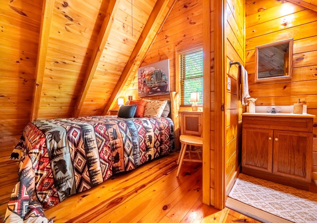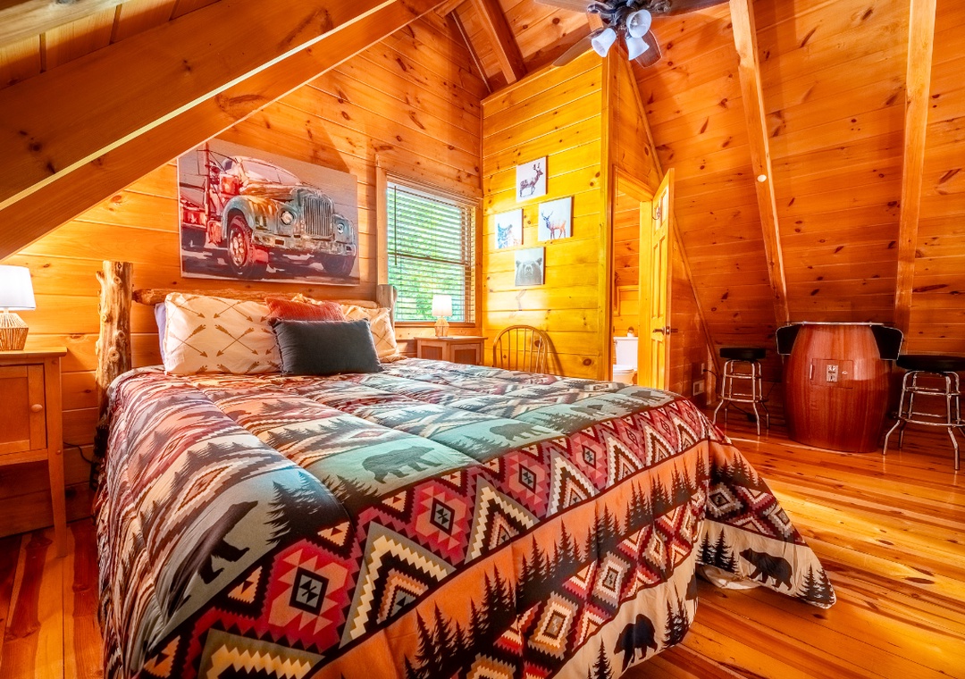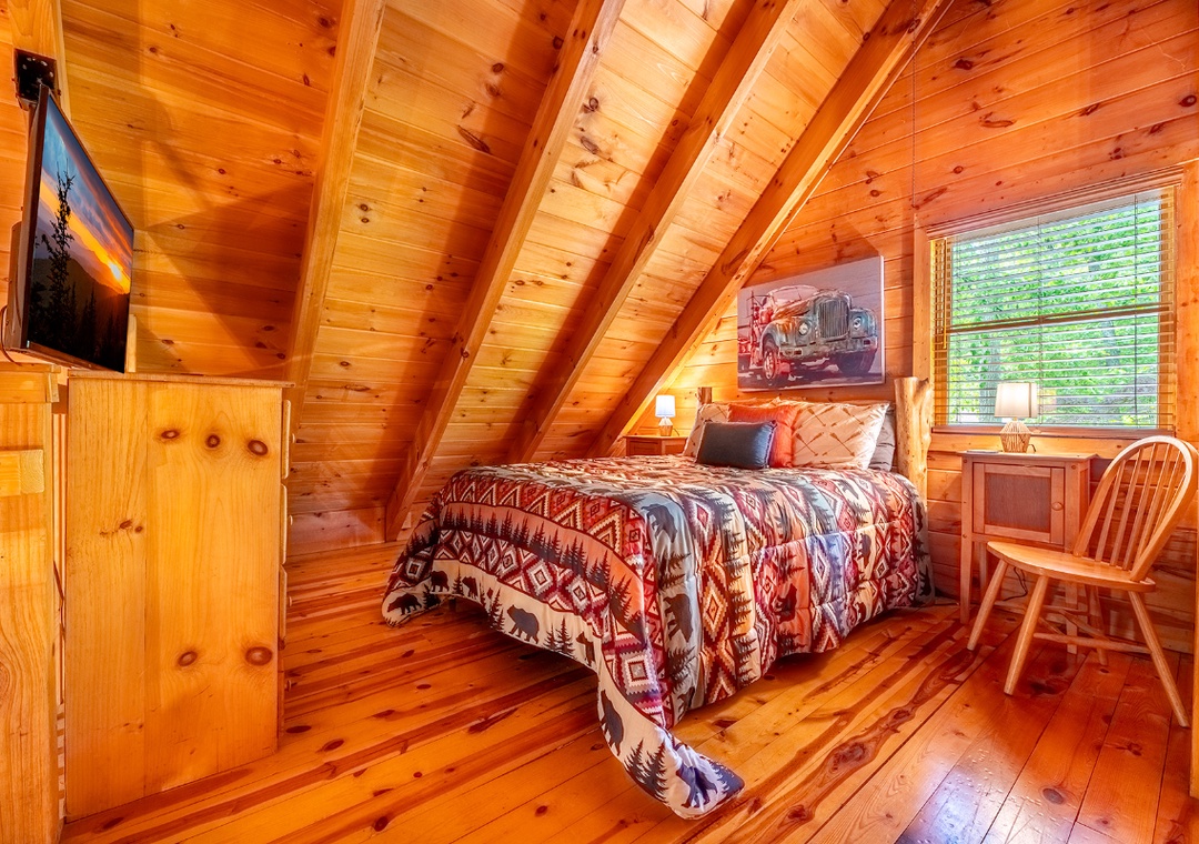 ✔ Loft: A Queen-sized Bed and a Flat-screen TV; Attached Half Bathroom