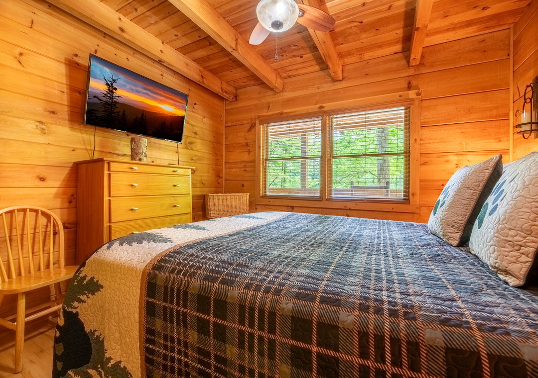 ✔ Bedroom #1 (Main Level): Spacious Bedroom with a Queen-sized Bed and a Flat-screen TV; Access to a Full Bathroom with Shower/Tub Combo