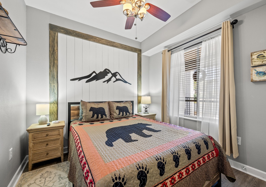 Long code to get in but we eventually memorized it, close to all the action but not too close , very clean and comfortable (beds weren’t too comfortable) that could be a preference issue. We loved all the extra cozy blankets and decor was perfect. Enjoyed seeing the mallard ducks in the creek behind the condo in the mornings. Overall everything was enjoyable would recommend.- Reviewed On: 10/28/2023