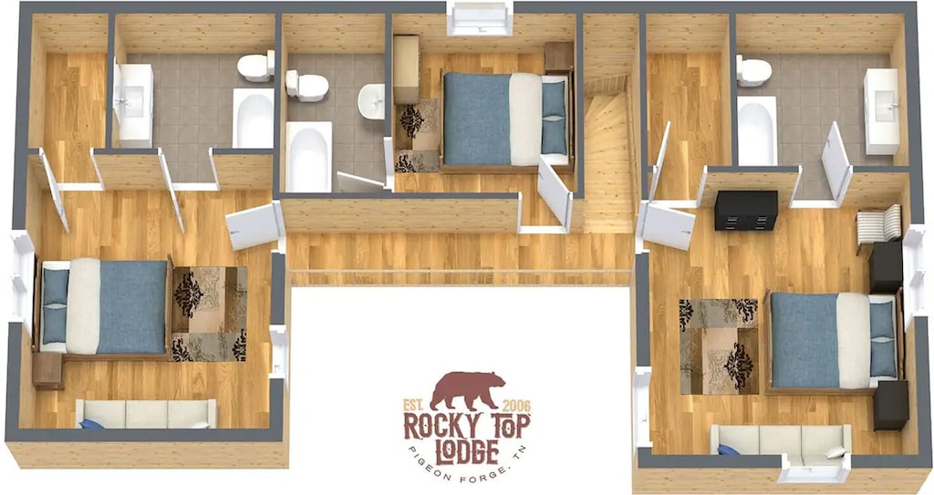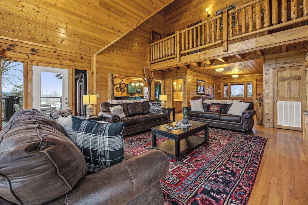 No matter if you're looking for a retreat for a large group or want a getaway for your big family, Rocky Top Lodge is the perfect Smoky Mountain cabin for your vacation. Unlike many Gatlinburg cabins, we are PERFECTLY located in between Sevierville and Pigeon Forge, nestled away less than 2 miles from them both. (Yet we're still far enough out to enjoy amazing mountain-top views and hear the silence of nature!)