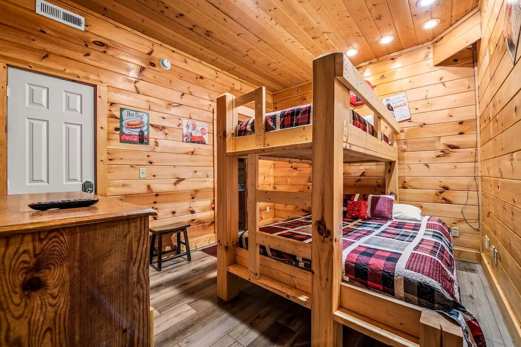 Bedroom #6 (downstairs): Queen-over-Queen bunkbed + Twin-over-Twin Bunkbed; Access to full sized bathroom with shower/tub combination