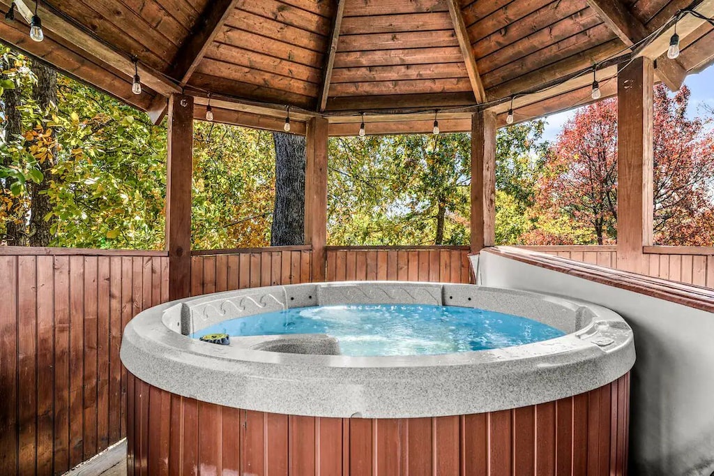 - Private gazebo-style area houses a 6-person year-round hot tub