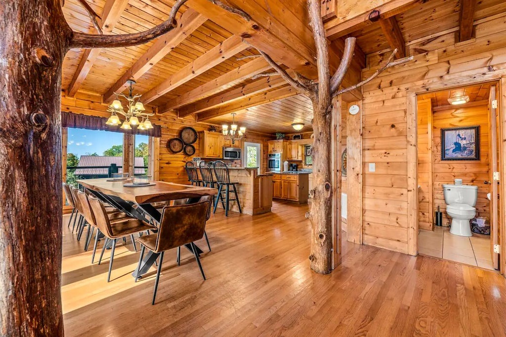 - Huge dining room with a beautiful wooden dining room table with window views