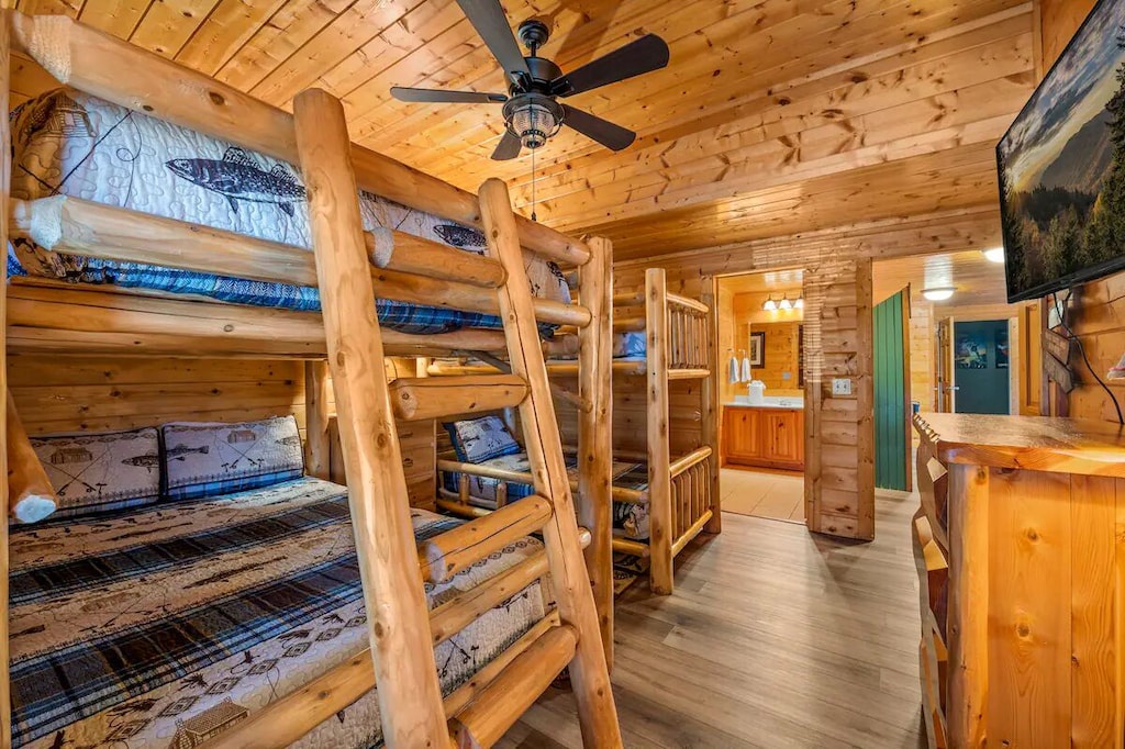 Bedroom #6 (downstairs): Twin-over-Queen bunkbed, TV and private half-bath