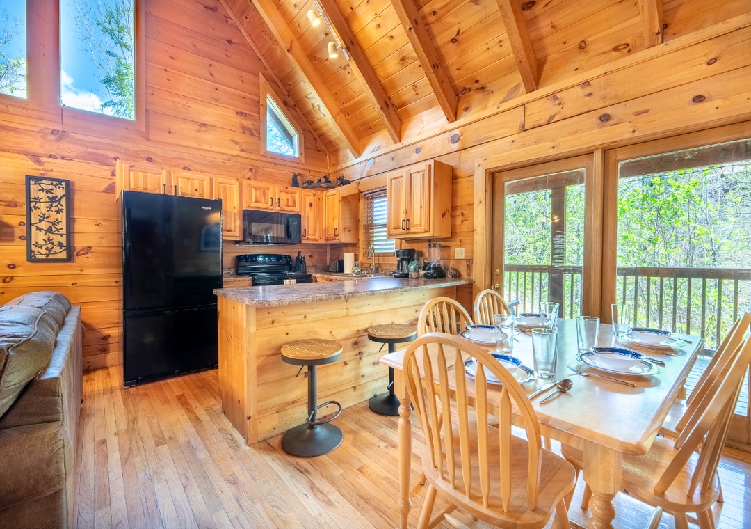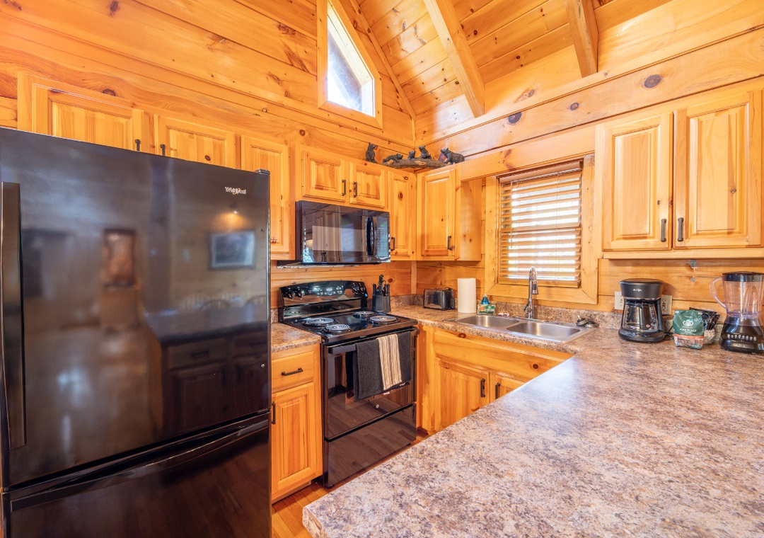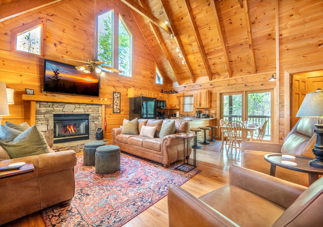 Whether you're visiting for a peaceful mountain retreat, a family getaway, or a fun-filled weekend with friends, every detail inside our cabin is crafted to make you feel at home from the moment you arrive. The living room is the heart of the cabin, with plush seating arranged around a stone gas fireplace, it’s perfect for snuggling up on cool mountain evenings or enjoying a quiet movie night. The adjacent kitchen offers everything you need for your stay, featuring modern appliances, ample counter space, and all the cookware and utensils you need to prepare meals with ease. Downstairs, find the game room which is a favorite for guests of all ages. Free WiFi is also available throughout the property.