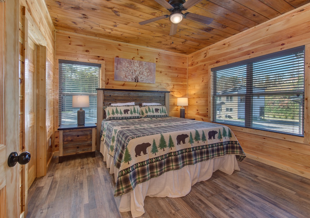 ✔ Bedroom #4 (Upper Level): Cozy bedroom retreat with King-sized bed & flat screen TV; Access to full-sized bathroom with Stand Up Shower