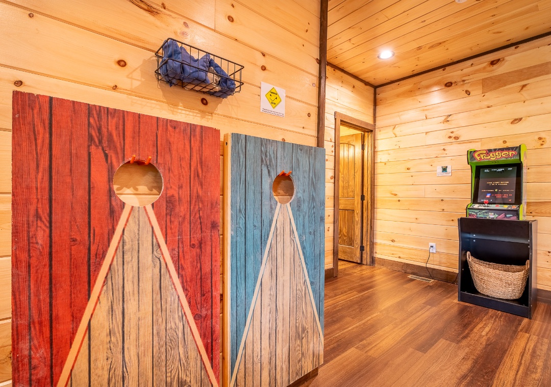 ✔ Game Area (Pool Table, Corn Hole and Arcade)