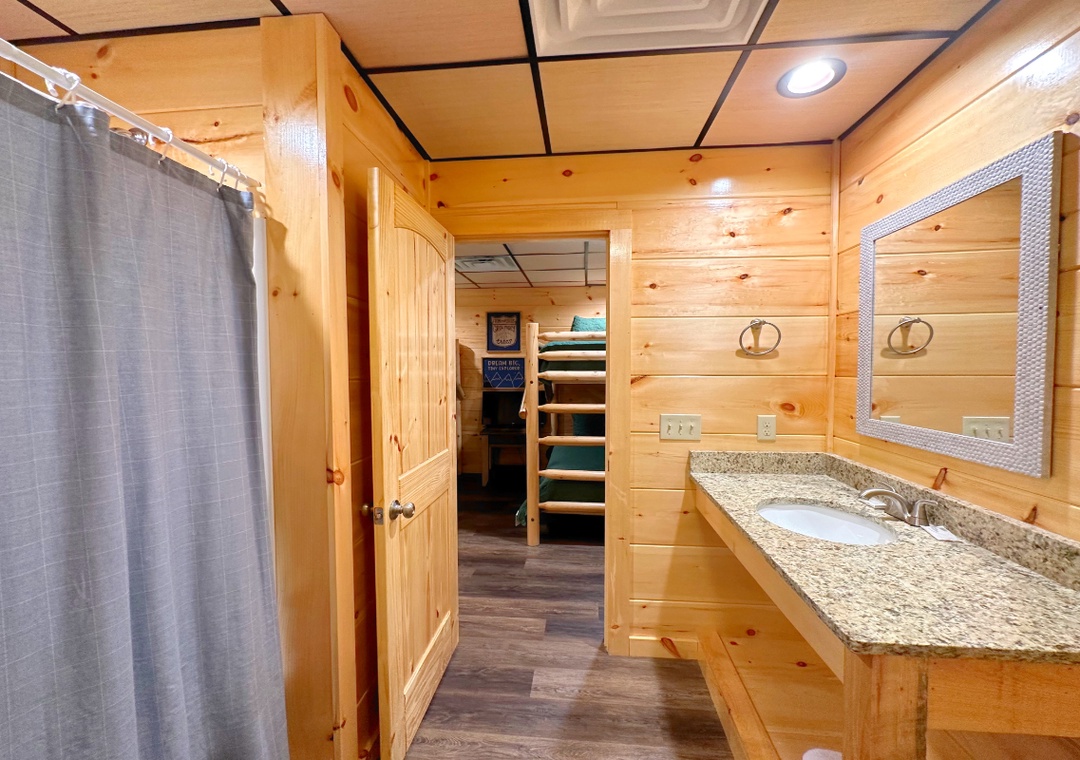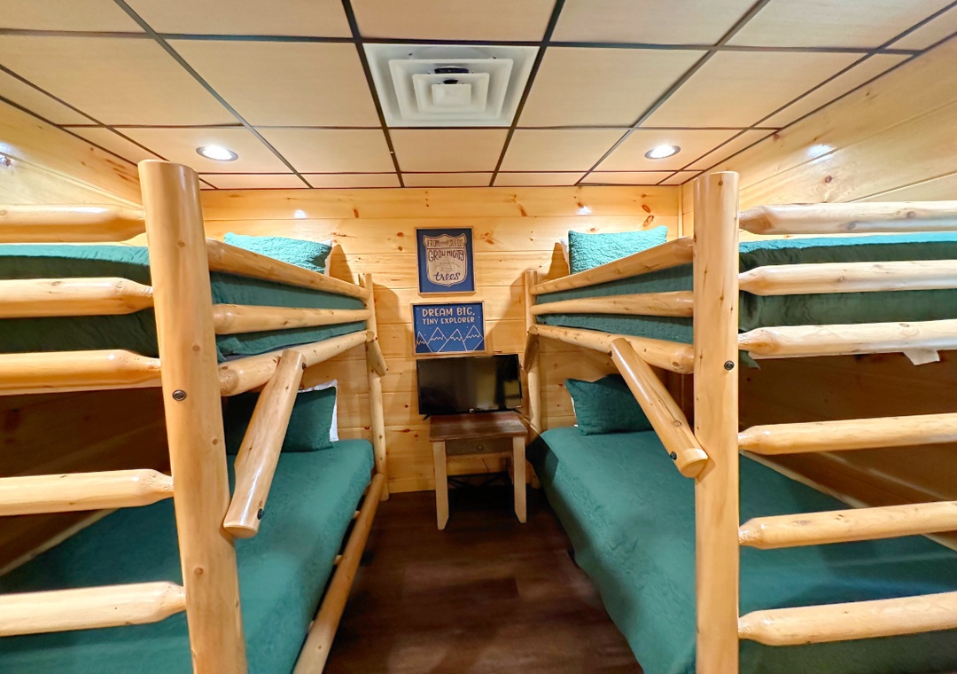 ✔ Bedroom #5 (Lower Level): Inviting Bedroom with 2 Sets of Twin-over-Twin Bunk Beds and Flat-screen TV; Attached Full Bathroom with Shower/Tub Combo
