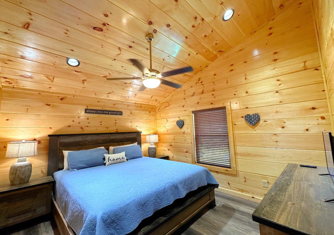 ✔ Bedroom #3 (Upper Level): Cozy Bedroom with a King-sized Bed and Flat-screen TV; Attached Full Bathroom with Stand Up Shower