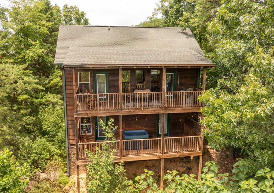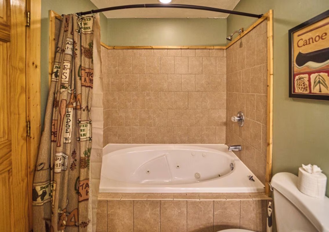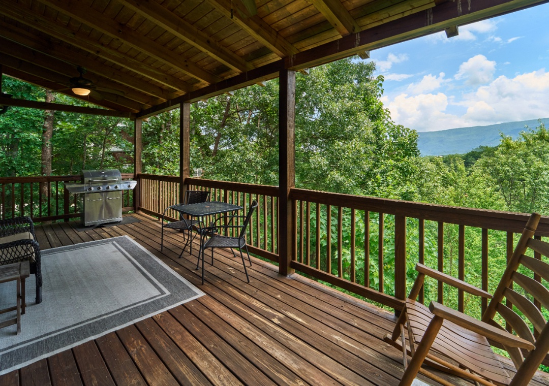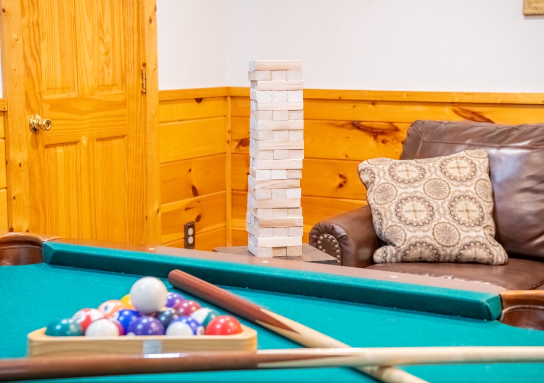 Start your day with coffee and mountain views from one of two spacious decks, equipped with rocking chairs and ample space to gather, chat, or just soak in the serenity of the Smokies. Fire up the propane grill on the main level deck for a relaxed cookout, then enjoy dinner with the mountain backdrop as your dining companion. Inside, the main level features a warm and inviting living room where you can curl up on the comfy seating and enjoy a movie night on the 48" Smart TV with DVD player, all while enjoying the glow and warmth of the propane fireplace. Downstairs is where the fun really comes to life. The lower level doubles as your private game room, offering hours of entertainment for both kids and adults. Challenge friends and family to a game of pool while enjoying your favorite tunes or shows on the 50" TV equipped with a Roku Stick, perfect for streaming everything from sports and movies to music and games. When you’re ready to wind down, step outside onto the lower-level deck and slip into the bubbling hot tub. With beautiful views and the peaceful sounds of nature surrounding you, it’s an experience that feels truly rejuvenating. For even more fun, guests have access to a seasonal community pool and fishing pond located about 10 minutes from the cabin. Take a break from the mountain trails and spend a sunny afternoon swimming, lounging, and enjoying the water with your group. It’s the perfect bonus amenity to round out your entertainment options during the warmer months.