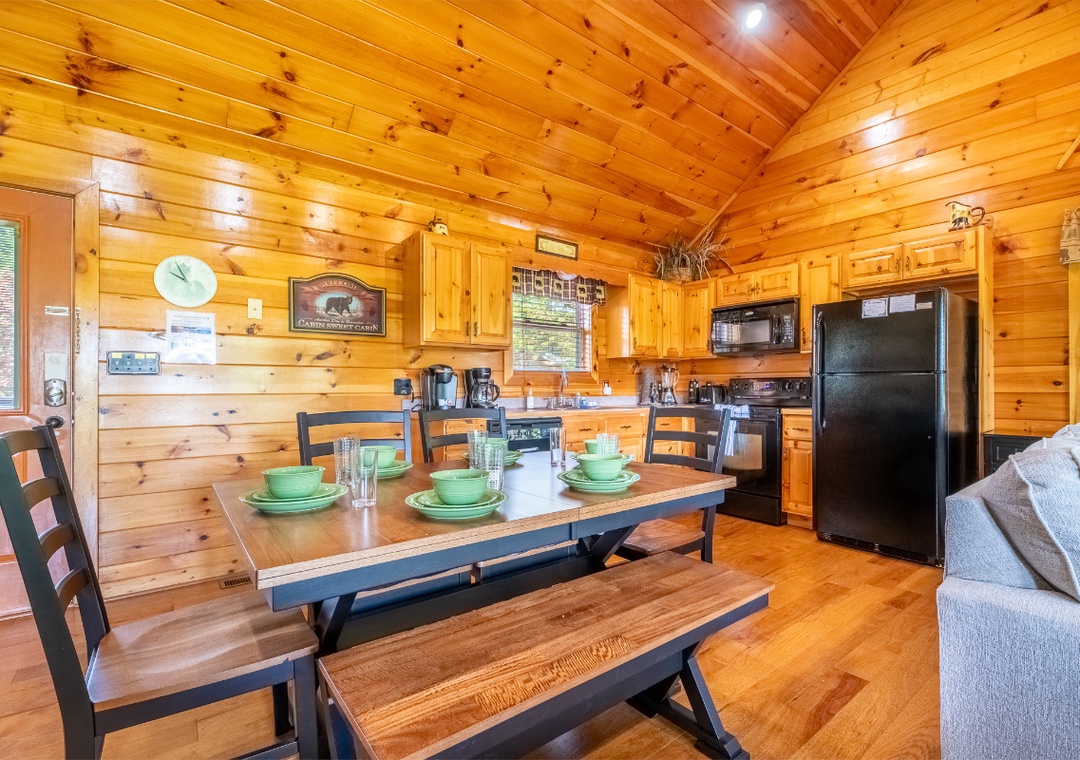 The fully-equipped kitchen boasts modern amenities, making it easy to prepare delicious meals for your family or friends. Well-appointed with a full-sized refrigerator, dishwasher, stove, microwave, and other kitchen appliances perfect for making breakfast, lunch, or dinner throughout your stay! All pots, pans, glasses, plates, silverware, etc., are also there for you! Gather around the inviting dining table to share stories and laughter, as it invites you to savor each bite while taking in the natural beauty of the surroundings.