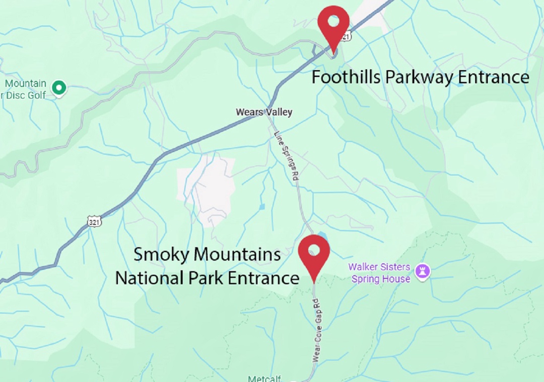 • Foothills Parkway East Entrance - 9 min drive