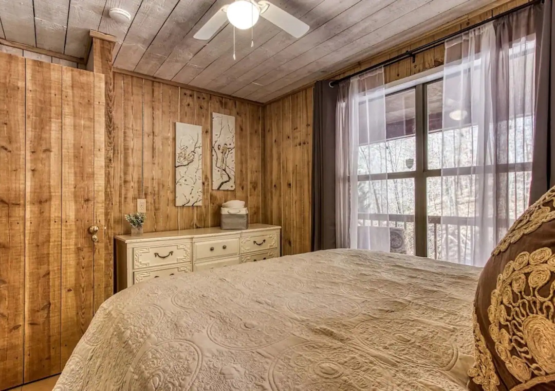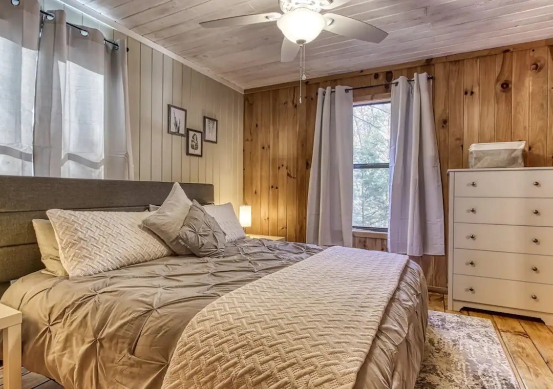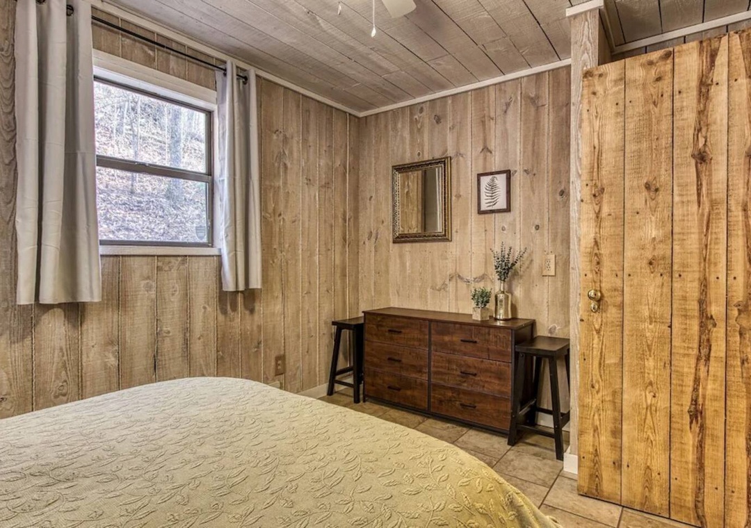The cabin was clean and cozy. The king bed was so comfortable!
