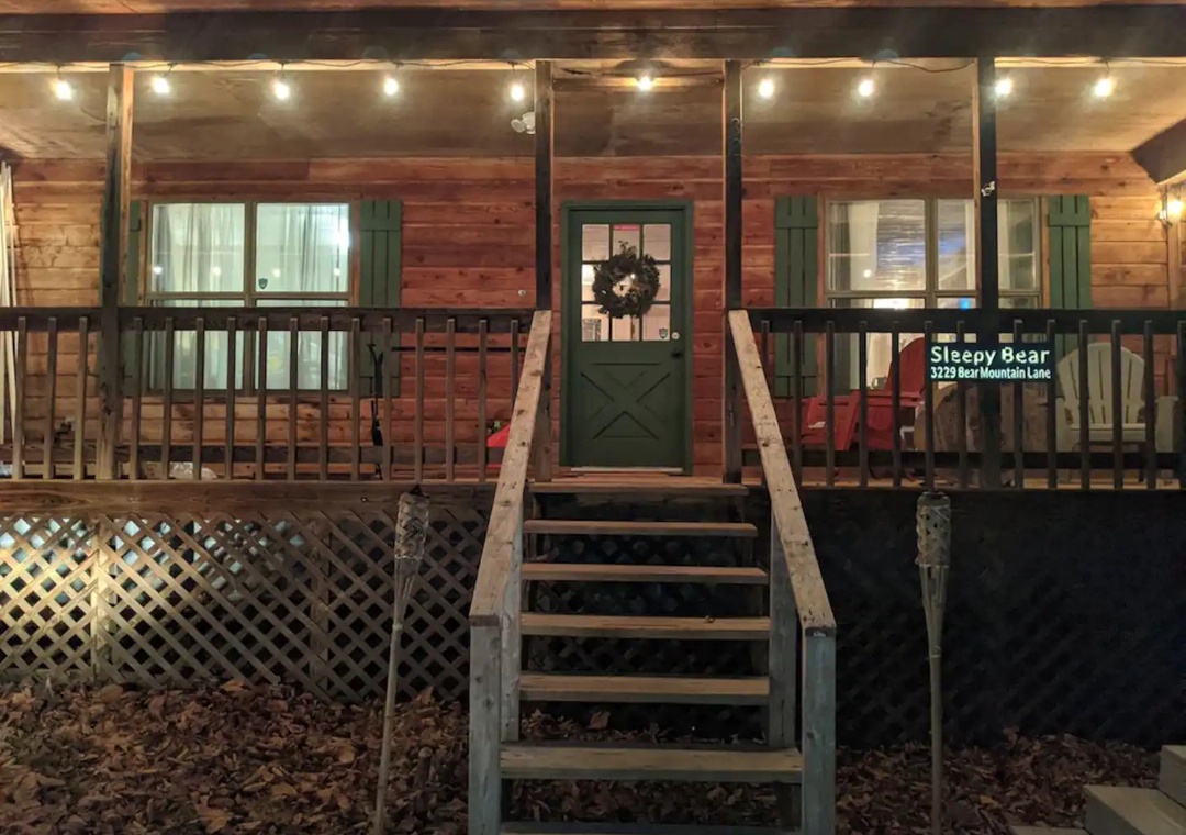 Sleepy Bear is located on Bear Mountain, which is approximately a 20-minute drive from Pigeon Forge, Splash Country ; Dollywood, and a 25-30 minute drive to Gatlinburg. Since our cabin is located in the mountains, expect curvy mountain roads and some steep inclines that can be narrow at times. There are also paved and gravel roads leading to our cabin, and therefore the use of motorcycles or trailers is not recommended.