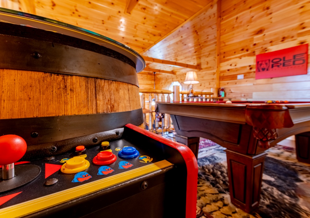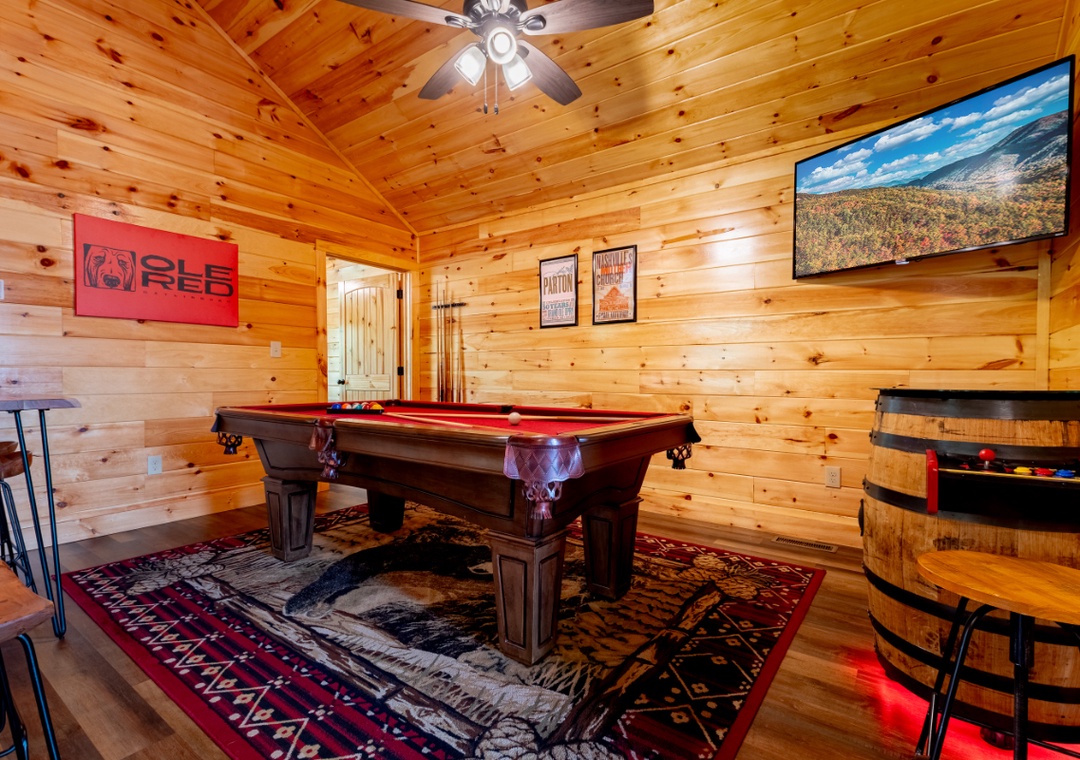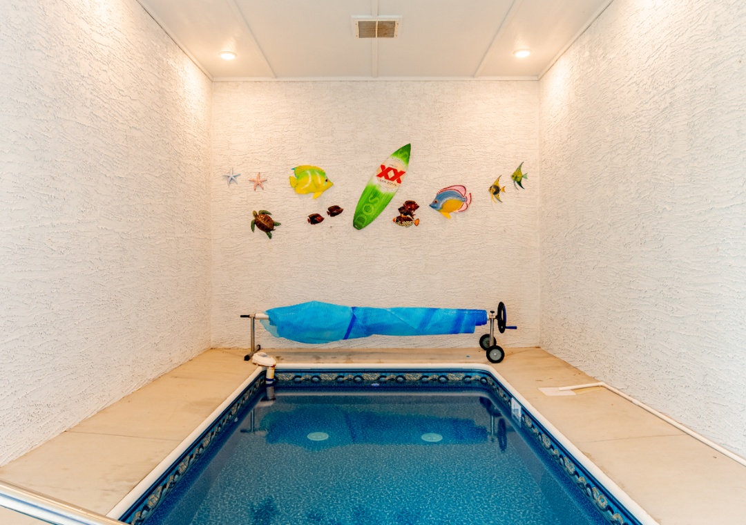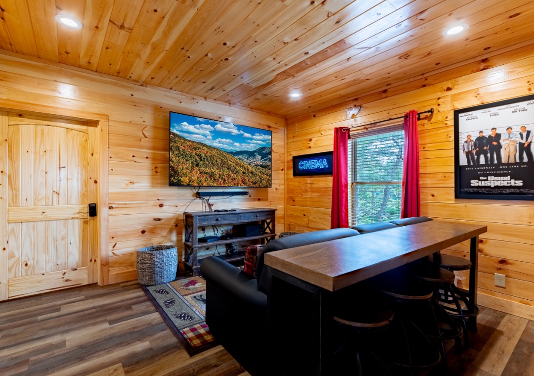 Start on the spacious loft area dedicated to fun and games. Here, a full-size pool table invites friendly competition, while an arcade gaming system promises hours of nostalgic enjoyment with classic and modern games. For movie enthusiasts, the dedicated theater room transforms into your very own private cinema. Downstairs, dive into the private heated indoor pool that offers year-round enjoyment regardless of the weather. The pool area provides a tranquil setting for both invigorating swims and leisurely lounging, making it a highlight of your stay. Step outside and continue the entertainment experience on the front deck, where a propane grill awaits for delicious barbecues and cookouts. The deck is also home to stylish Adirondack chairs, perfect for relaxing and enjoying the gorgeous mountain views while sipping on your favorite drink. When it comes to relaxation and unwinding, the hot tub on the main level side deck offers a perfect retreat. After a day of adventure or fun-filled activities, soak in the bubbling waters while marveling at the breathtaking mountain views.