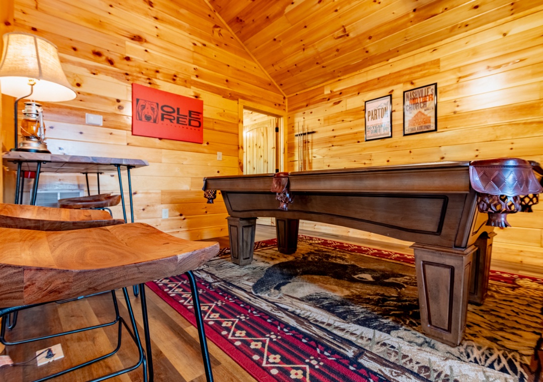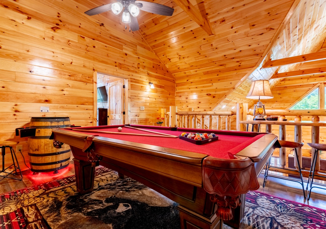 As you step inside, you'll immediately be enveloped in warmth and sophistication. The expansive great room features soaring ceilings, a stunning stone fireplace, and large windows that bring the beauty of the mountains indoors. Adjacent to the great room, the fully furnished kitchen and dining area are designed for both functionality and style. Head to the spacious loft area, where you'll find a full-size pool table and an arcade gaming system. This recreational space is perfect for friendly competition and fun-filled evenings. For movie enthusiasts, the dedicated theater room provides a cinematic experience like no other. When it's time to unwind, the lodge's private heated indoor pool is a highlight of the indoor amenities. Located downstairs, the pool area offers a serene escape, allowing you to enjoy a relaxing swim regardless of the weather outside. Free WiFi is also available throughout the property.