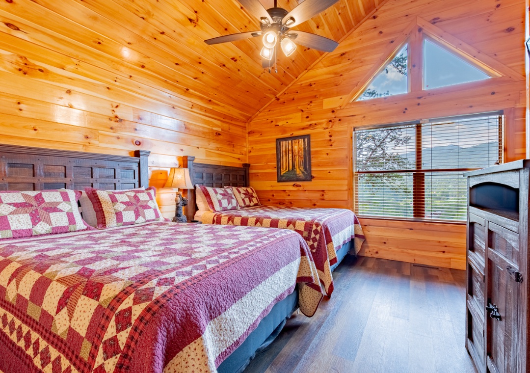 ✔ Bedroom #4 (Upper Level): ComfyBedroom with 2 Queen-sized Bed and Flat-screen TV; Attached Full Bathroom with Stand Up Shower