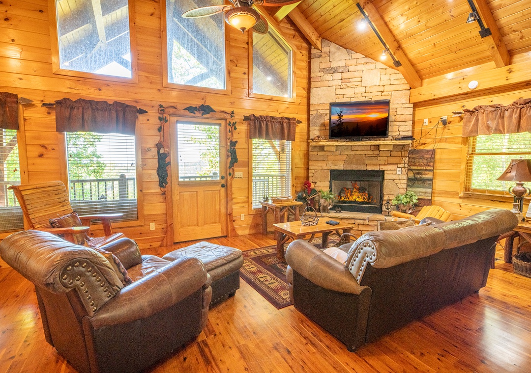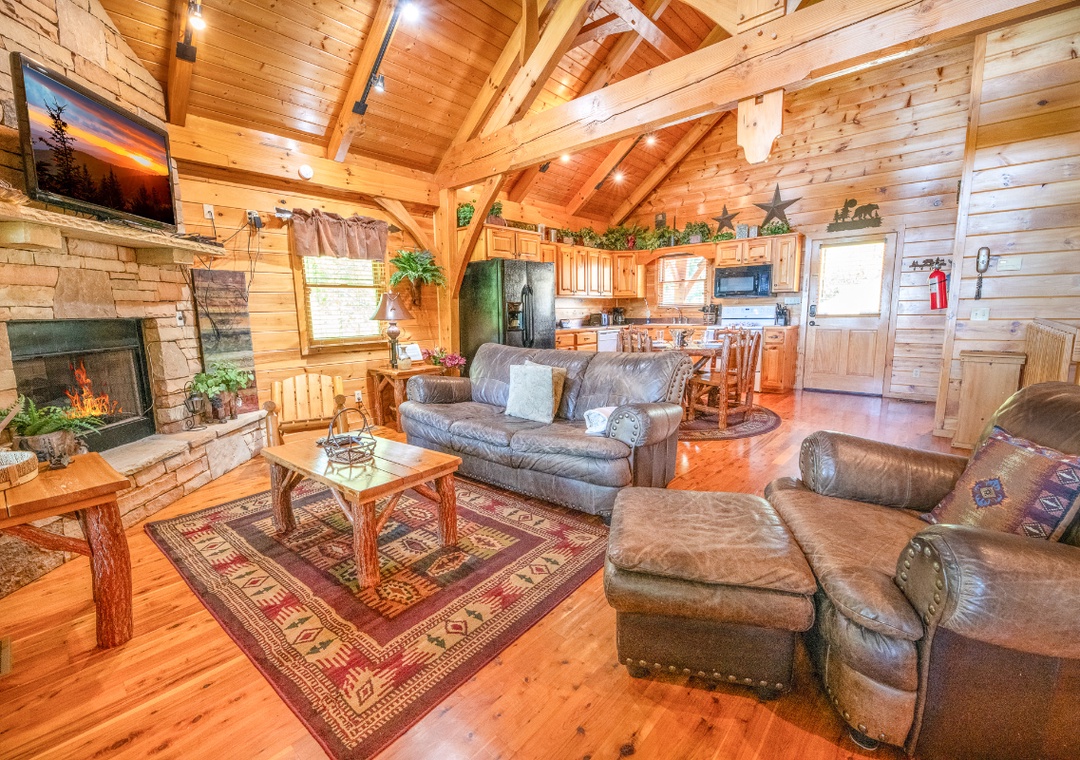On the main level, the open-plan living room is the perfect spot for gathering and relaxing. As the sun sets, light the propane fireplace and settle in for a movie night on the flat-screen TV, or pick a book for some quiet reading by the fire. For those who love games and friendly competition, head down to the lower-level game area where you'll find a pool table ready for hours of fun and a small foosball table that adds to the entertainment. After some indoor gaming, step outside to the private hot tub on the lower-level back deck. Surrounded by the peacefulness of the Smoky Mountains, this secluded spot is perfect for soaking your cares away. Enjoy the soothing jets of the hot tub under the open sky, whether it's after a long hike or just a day spent relaxing at the cabin. The fun doesn’t stop indoors! Outside, gather around the propane firepit at the front of the property. This is the ideal spot for late-night storytelling, roasting marshmallows, or simply basking in the warmth of the fire while the cool mountain air surrounds you.