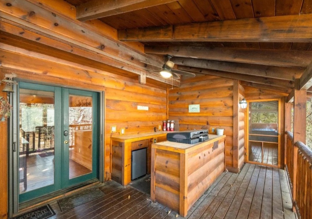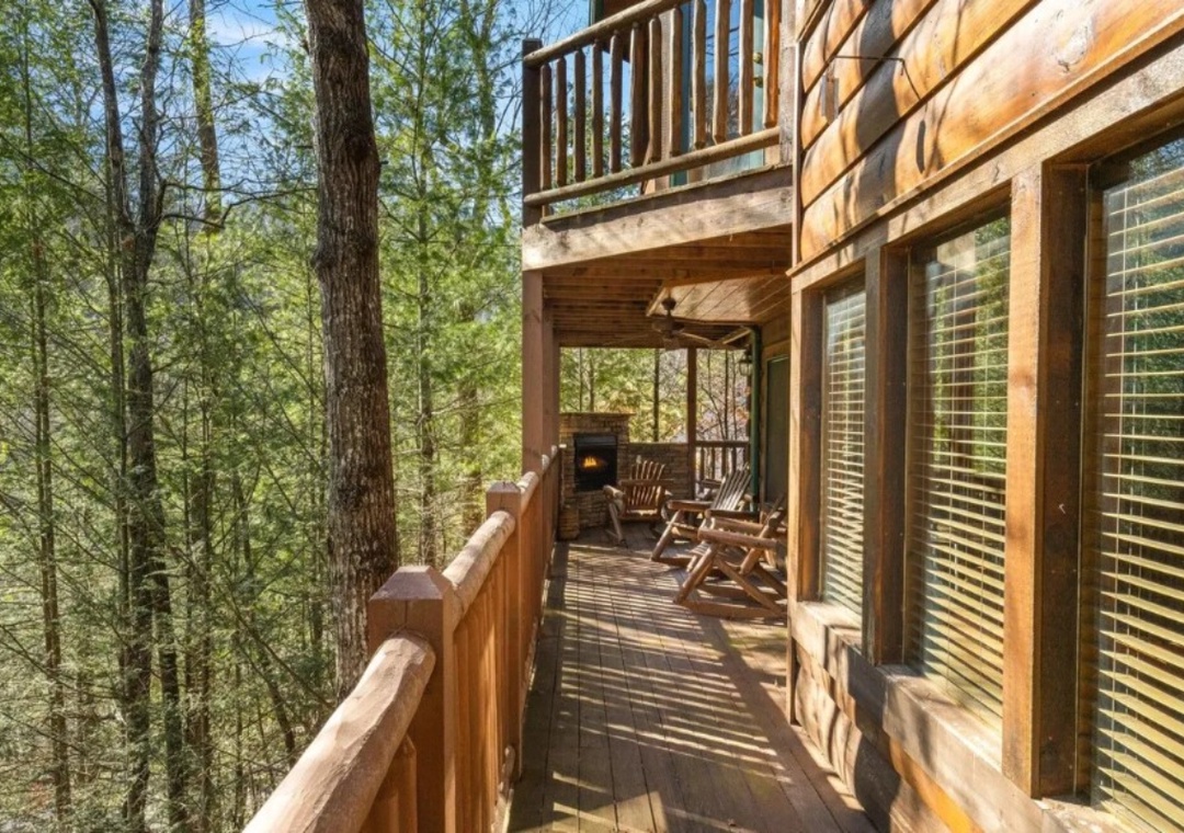 Entertainment at Smoky Breeze Retreat is thoughtfully designed to keep everyone engaged and relaxed throughout your stay. Downstairs, the dedicated movie room invites you to kick back and enjoy cinematic nights on a 60-inch Smart TV, perfect for streaming your favorite films, catching up on shows, or hosting family movie marathons. Just steps away, the game room delivers hours of friendly competition and laughter with a pool table and a classic arcade game, all complemented by an additional Smart TV, so no one misses the big game. Outdoor entertainment is just as inviting. The private hot tub on the front porch offers a soothing retreat any time of day. The downstairs back porch provides another cozy hangout space, complete with comfortable seating and a propane fireplace that creates a warm, relaxing atmosphere for evening conversations or morning coffee. You can also take advantage of the seasonal community pool located at the entrance of the resort, offering a refreshing way to cool off during warmer months and adding even more variety to your mountain getaway.