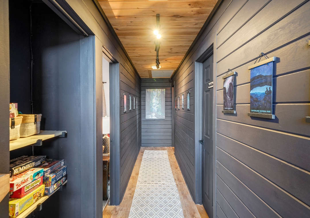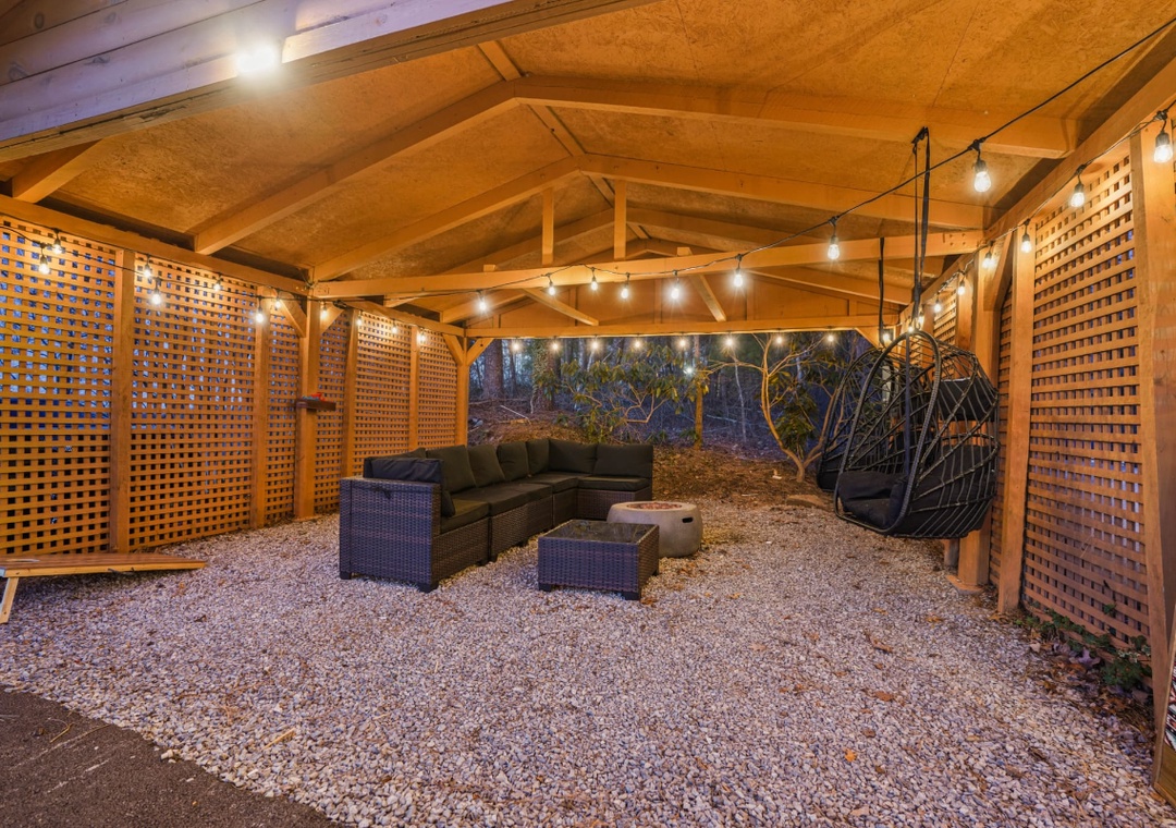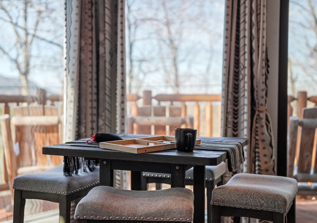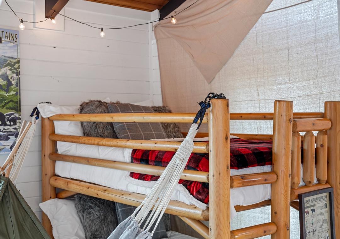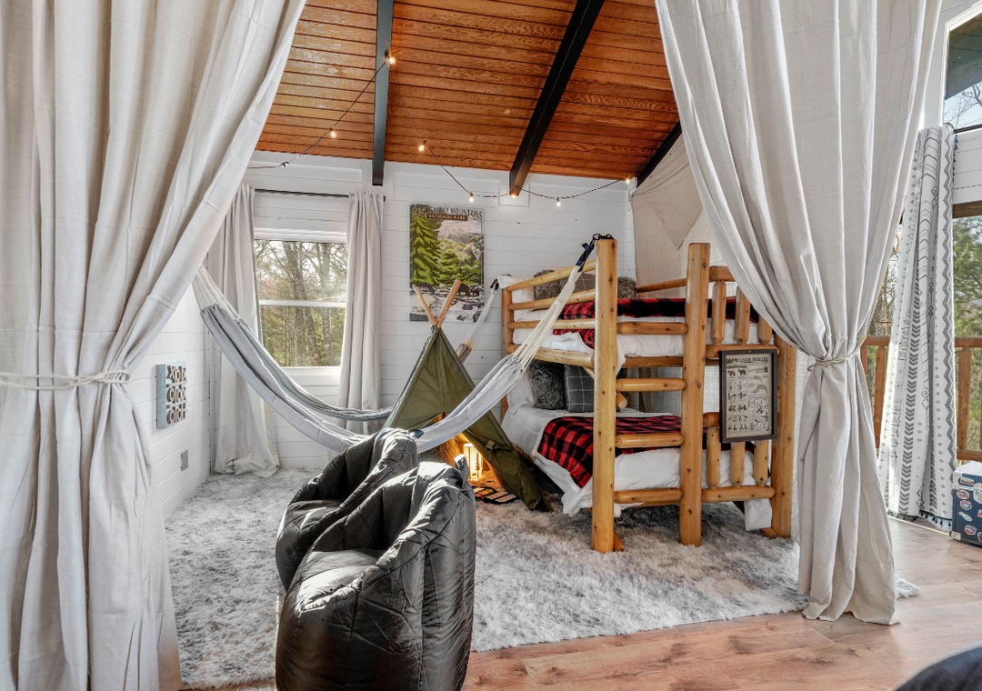 The highlight of the cabin is the massive lower-level game room fully loaded with four arcade machines, a full-size pool table, air hockey, and even a photo area with props for capturing those fun vacation memories. When you’re ready to step outside, the entertainment doesn’t stop. Just beyond the game room, the lower-level back deck features a private hot tub where you can soak under the stars or relax after a long day of adventures. You’ll also find a propane grill on this level, perfect for outdoor cookouts with friends and family. Next to the deck, you’ll discover the outdoor gaming area, designed for casual competition and cozy evenings. Play a few rounds of cornhole or throw darts under the trees, then gather around the propane firepit for storytelling, s’mores, and stargazing. Back inside, the fun continues throughout the cabin. In the living room, gather around the 65-inch Smart TV for movie nights or streaming your favorite shows. The upstairs loft serves as a second living space with its own fireplace, plenty of natural light, and a mix of board games, books, and tic-tac-toe games that kids and adults alike will enjoy. The entertainment options extend beyond the cabin, too. As a guest of Smoky Fox Lodge, you’ll have access to the seasonal community pool at Shagbark Resort. For those looking to explore, you're just 15 minutes from the action-packed attractions of Pigeon Forge, including Dollywood, The Island, go-karts, mini golf, and dozens of restaurants and shows.