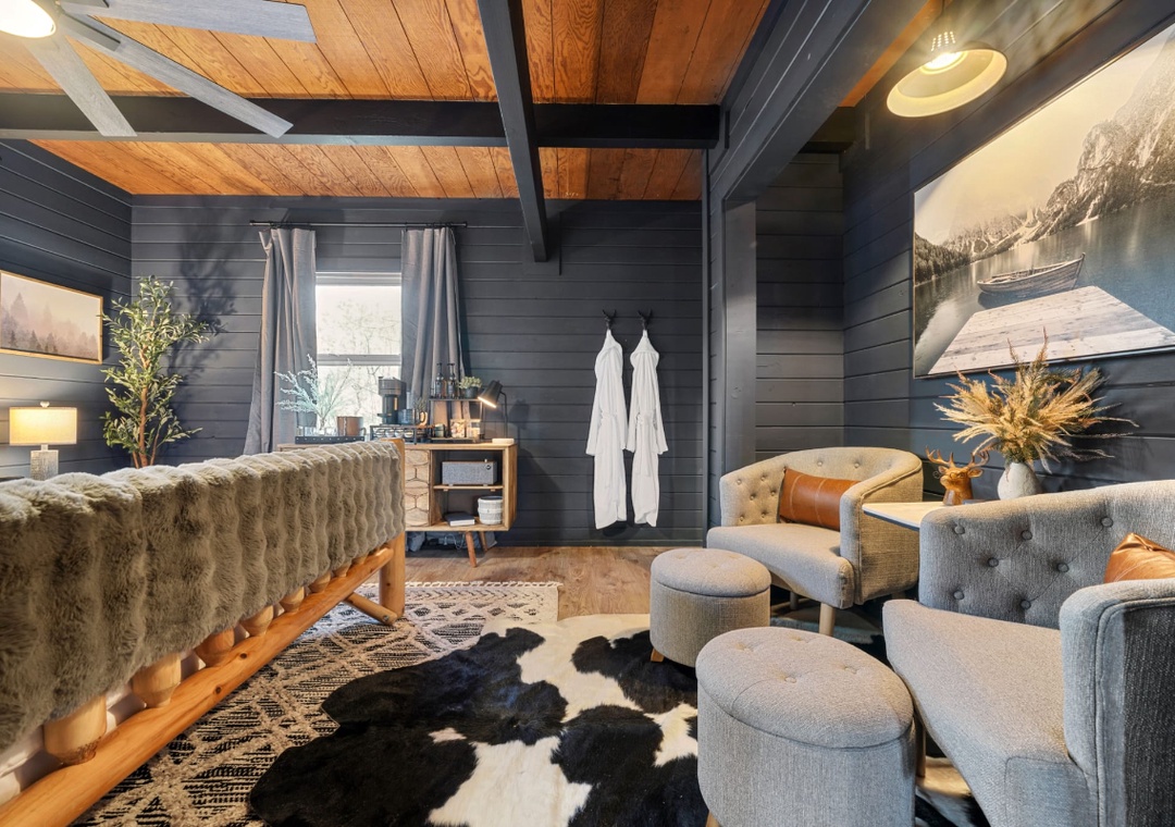 With an open-concept layout, the cabin invites cozy mornings or evenings together. Our floor plan is ideal for families and groups alike and is the perfect get-a-way, so pack your bags – because the mountains are calling!
