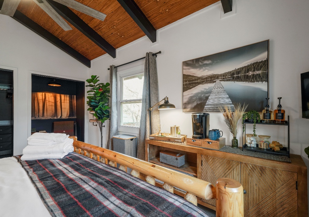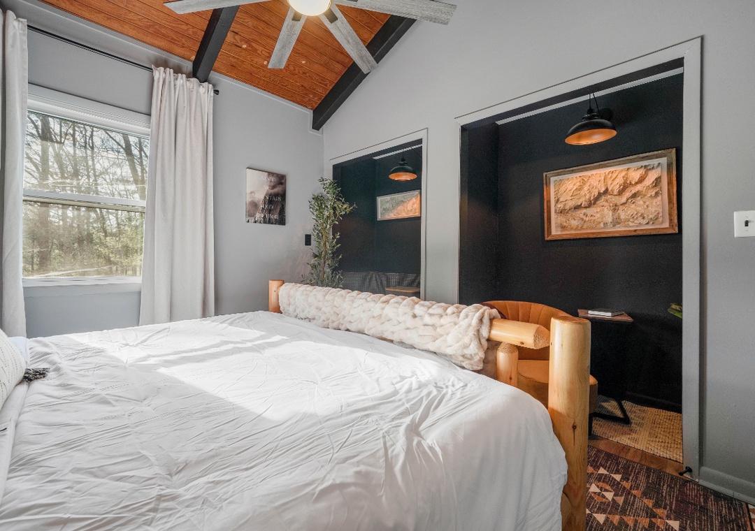 ✔ Bedroom #3 (Upper Level): Inviting Bedroom with a King-sized Bed, Reading Nook, and a Coffee Bar; Access to a Full Bathroom with Shower/Tub Combo