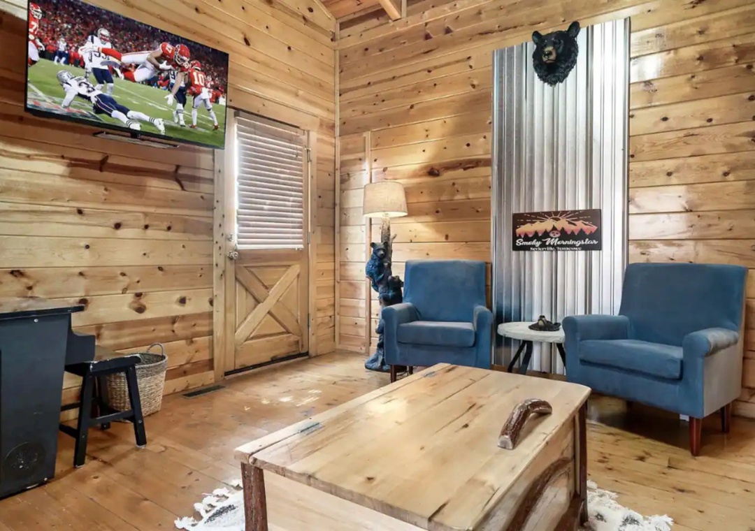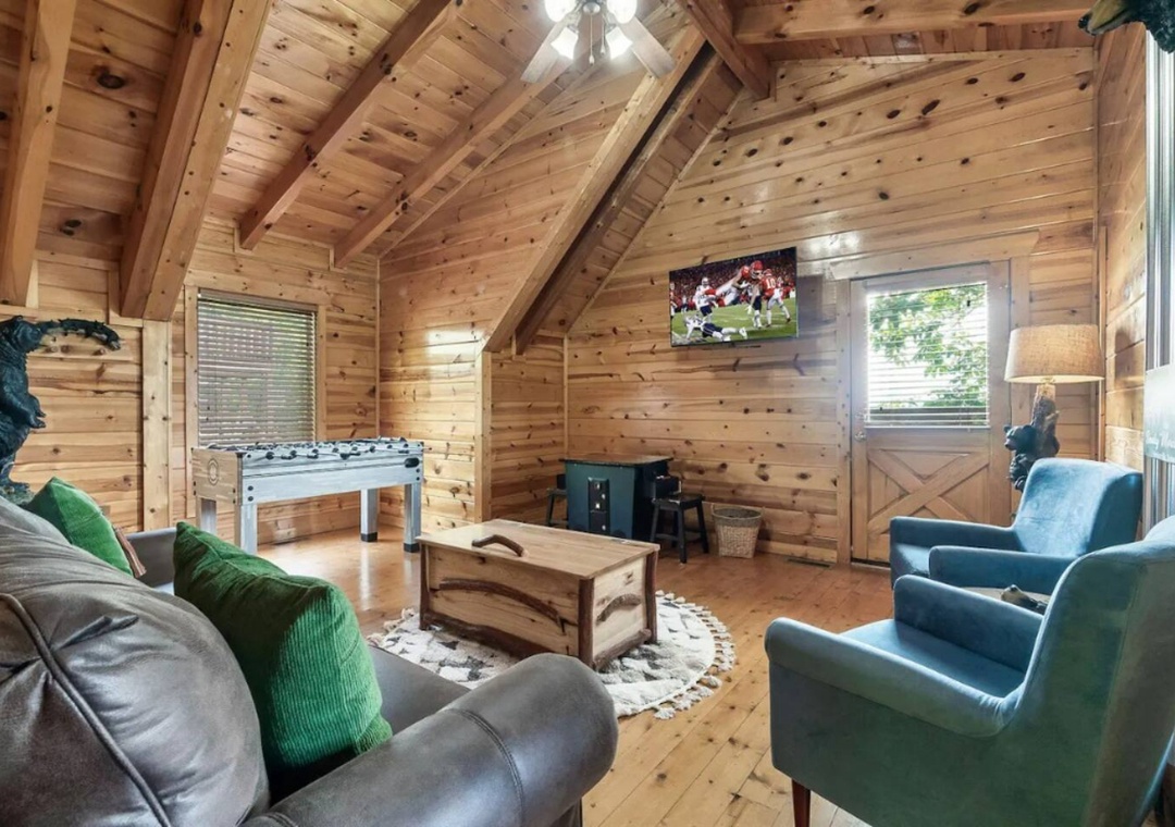 “Smoky Morningstar” offers tons of entertainment options for your family and friends! Challenge friends and family to a thrilling game of foosball or indulge in a nostalgic trip down memory lane with an array of arcade classics. Whether you're a competitive enthusiast or simply looking for some laid-back fun, the game room offers endless enjoyment for all. After an exhilarating round of games, step outside on the spacious decks and surrender to the allure of the bubbling hot tub, where tranquility and rejuvenation await. Simply relax in a rocking chair while sipping your morning coffee or evening glass of wine or find yourself grilling on the BBQ off the deck. Whether you're unwinding with loved ones or simply basking in the serenity of nature, Smoky Morningstar” is the perfect sanctuary for amazing vacation memories.