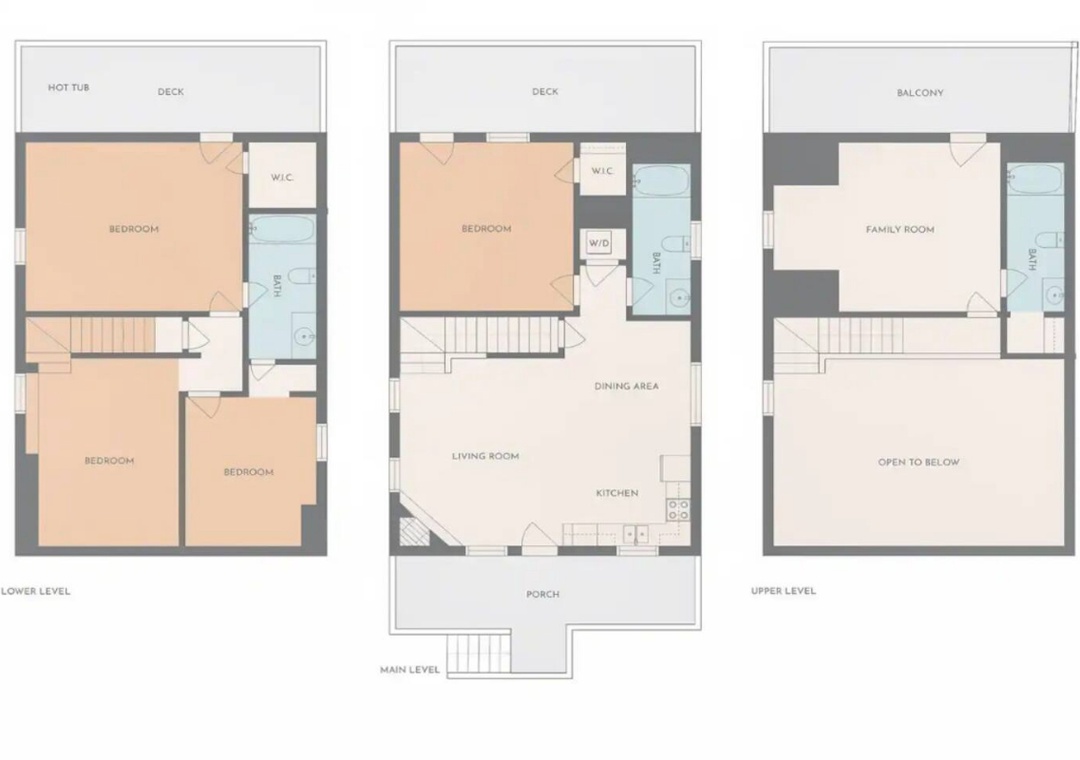 First let say that the cabin is on main road going up, you don't have to turn off. It's near the top on the right. Pretty steep but easily accessible, up to 3 cars will fit in front for parking. Inside kitchen is stocked with everything to cook meals as well as a keurig and coffee pot. They have a bathroom on each level "3". The game room is upstairs and has a queen hidabed. The main floor has the master and downstairs has 3 bedrooms. One with twin bunkbeds, another with a queen bed and the 3rd has 2 queen beds and a futon. The hot tub is outside this room. All 3 levels have full decks and a beautiful view!- Reviewed On: 12/18/2023