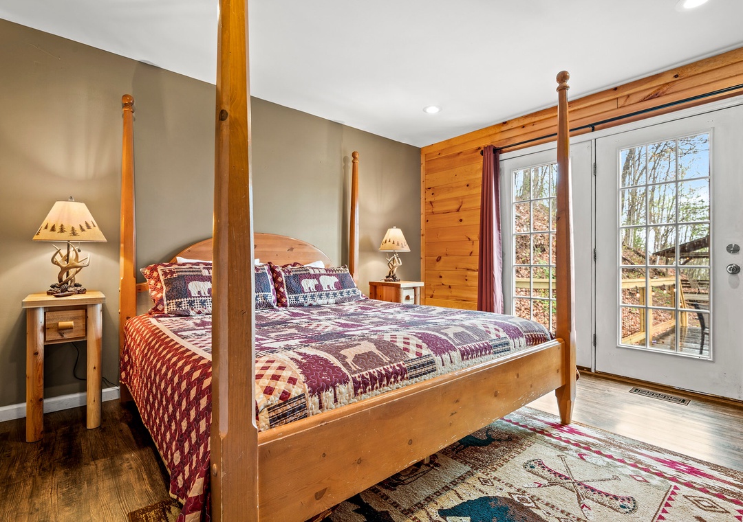 ✔ Bedroom #2 (Main Level): Cozy King Bedroom with flat-screen TV; Attached Full Bathroom with Stand-up Shower