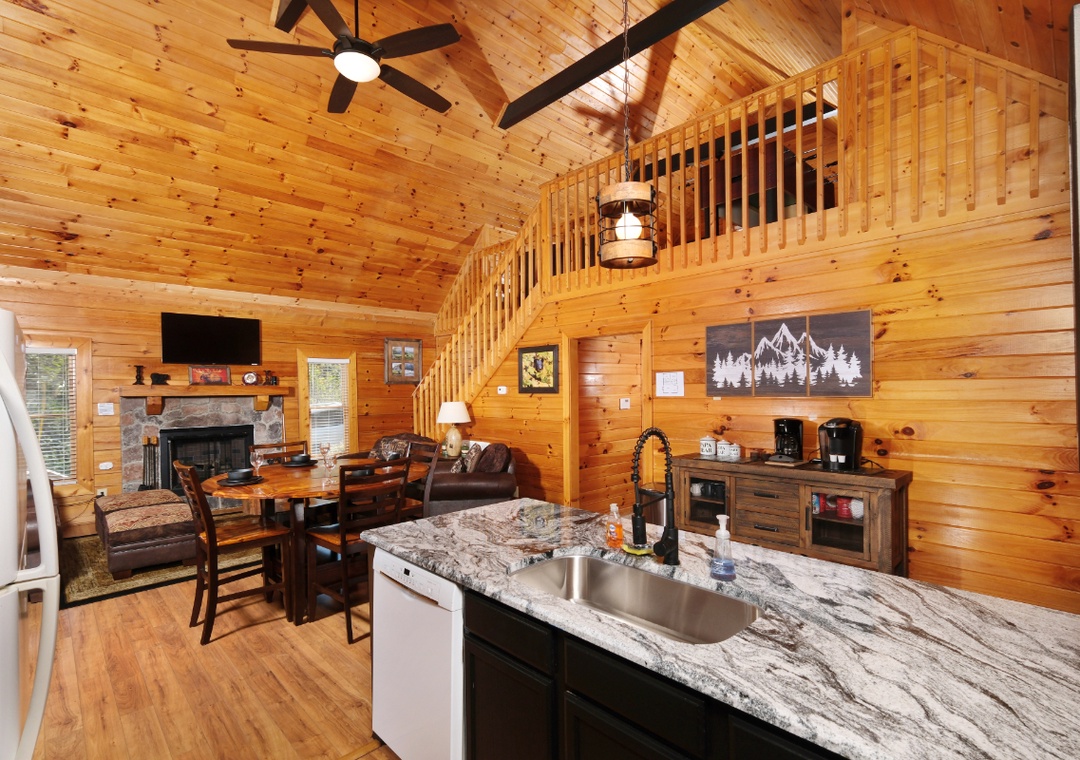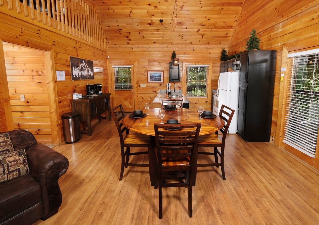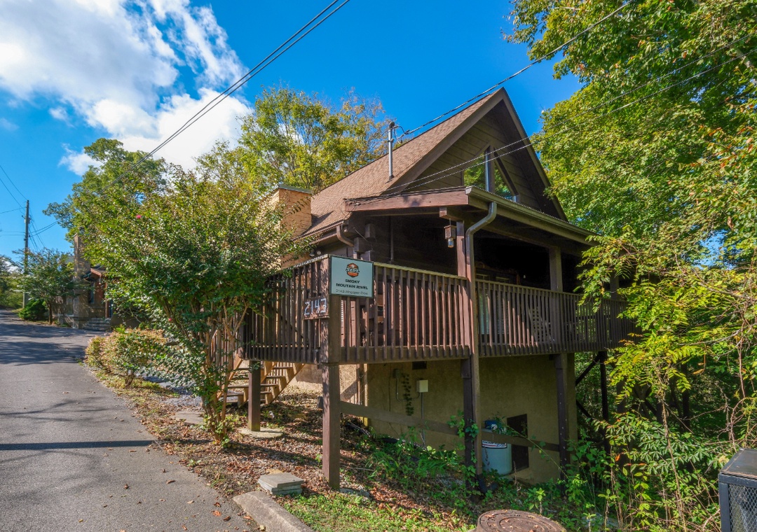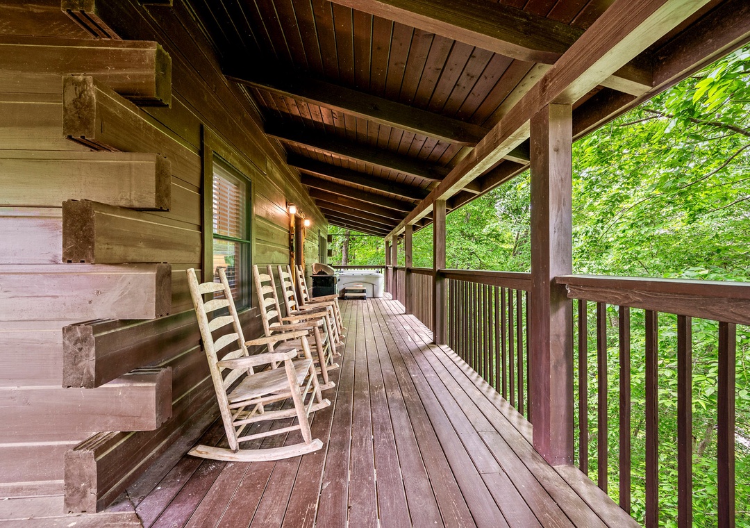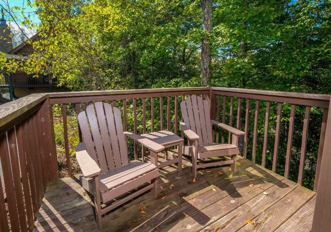 The loft is where the fun really begins. Enjoy some competitive fun with the foosball table, multicade (arcade game), smart TV and more. And outside, when youre ready to kick off the day, the large porch is a great way to drink your morning coffee. Sit in the comfy wooden chairs or just lean on the railing and take in the scenic views. Of course the hot tub is a great way to relax after a long day of hiking (or shopping!) while enjoying a glass of wine or moonshine.