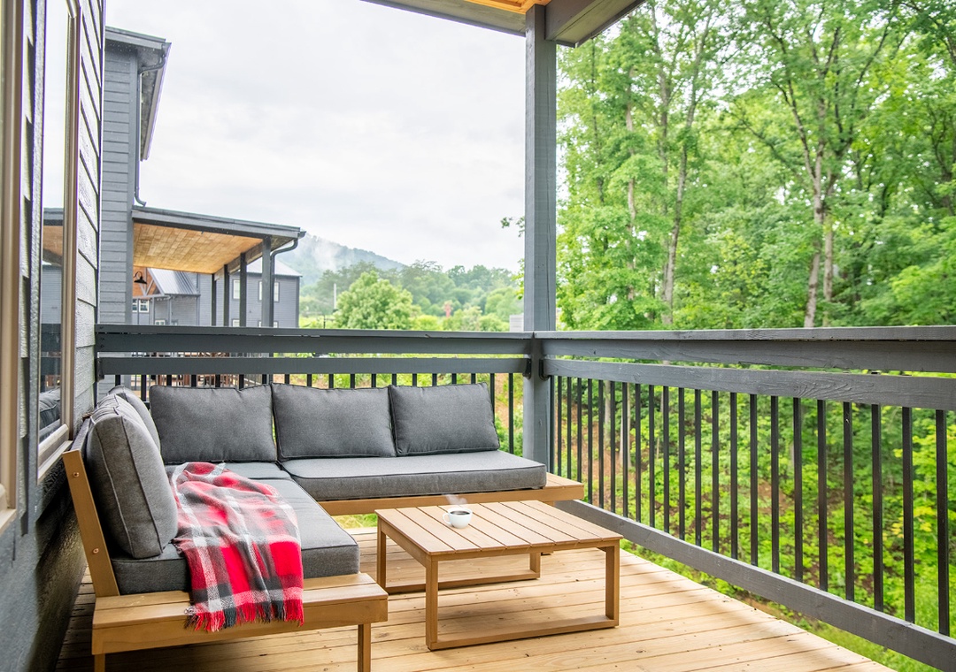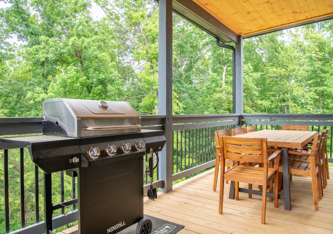 Get ready to dive into the fun – literally – with your very own private heated indoor pool, located just downstairs. Rain or shine, you and your loved ones can splash, swim, and soak in this beautiful pool. When it's time to relax under the open sky, step out onto the lower-level deck and ease into the bubbling hot tub, where you can unwind while soaking up the serene sights and sounds of the Smoky Mountains. It’s the ideal spot to let go of stress, soothe tired muscles after a day of hiking, or sip a drink under the stars. For indoor fun, head to the downstairs game room that is fully loaded with something for everyone. Kids, teens, and grown-ups alike will love competing on the foosball table, going head-to-head on the NBA Jam arcade machine, or reliving the golden age of gaming with the Ms. Pac-Man and Galaga arcades. It's the kind of game room that turns casual evenings into hours of laughter and friendly competition. Gamers and movie lovers will also appreciate the 65" Smart TV with PlayStation in this area. Step onto the spacious main level deck, where the propane grill is ready for outdoor feasts and cookouts.