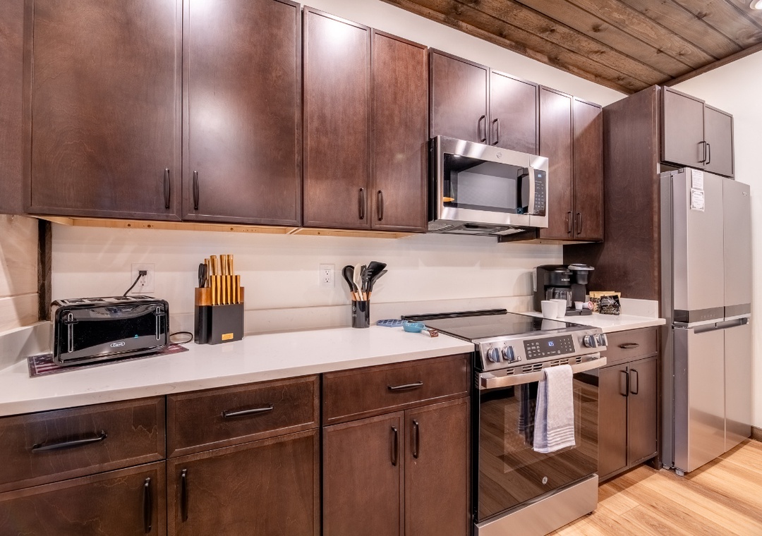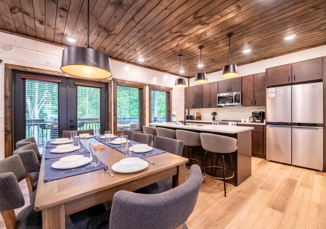 The fully-equipped kitchen boasts modern amenities, making it easy to prepare delicious meals for your family or friends. Well-appointed with a full-sized refrigerator, dishwasher, stove, microwave, and other kitchen appliances perfect for making breakfast, lunch, or dinner throughout your stay! All pots, pans, glasses, plates, silverware, etc., are also there for you! Gather around the inviting dining table or the alfresco dining on the deck to share stories and laughter, as it invites you to savor each bite while taking in the natural beauty of the surroundings.
