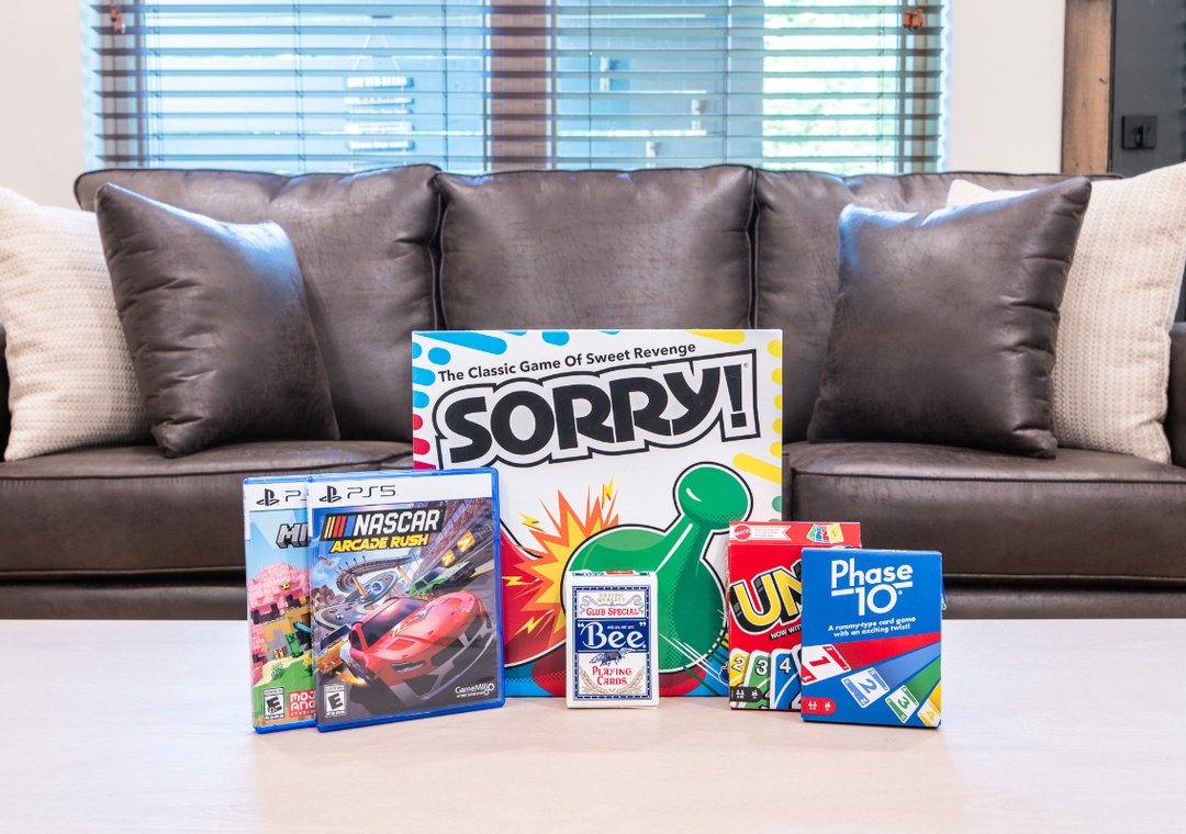 ✔ A Queen Sleeper Sofa in the Downstairs Game Room for additional sleeping space