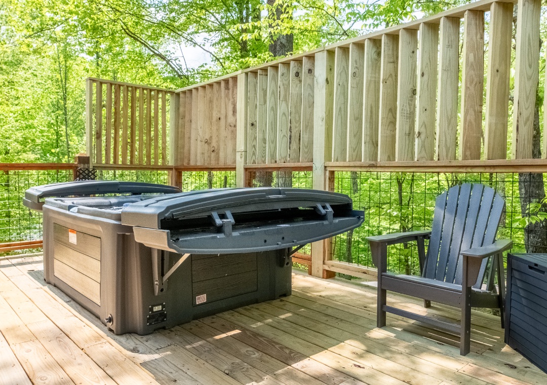 Step inside the living room and be surrounded by floor-to-ceiling windows that bring the outdoors in, bathing the cabin in natural light and offering relaxing views of the surrounding forest. The centerpiece of the living room is the impressive 65” Samsung Smart TV, perfectly positioned above the electric fireplace. Whether you’re curling up for a cozy movie marathon, streaming your favorite shows, or watching the big game, it ensures the ultimate viewing experience. The cabin’s high-speed Wi-Fi ensures you’ll always stay connected and entertained. Step outside onto the spacious deck to continue the fun. It's home to a brand-new hot tub that invites you to soak under the stars while breathing in the crisp mountain air. This outdoor living space is also perfect for enjoying meals, playing card games, or simply relaxing while you take in the sights and sounds of the surrounding forest. Smoky Mountain Secret’s location also makes it a haven for adventure seekers and those who love exploring. You’re just a short drive from charming local attractions, vibrant towns, hiking trails, shops, and popular destinations within the Great Smoky Mountains National Park.