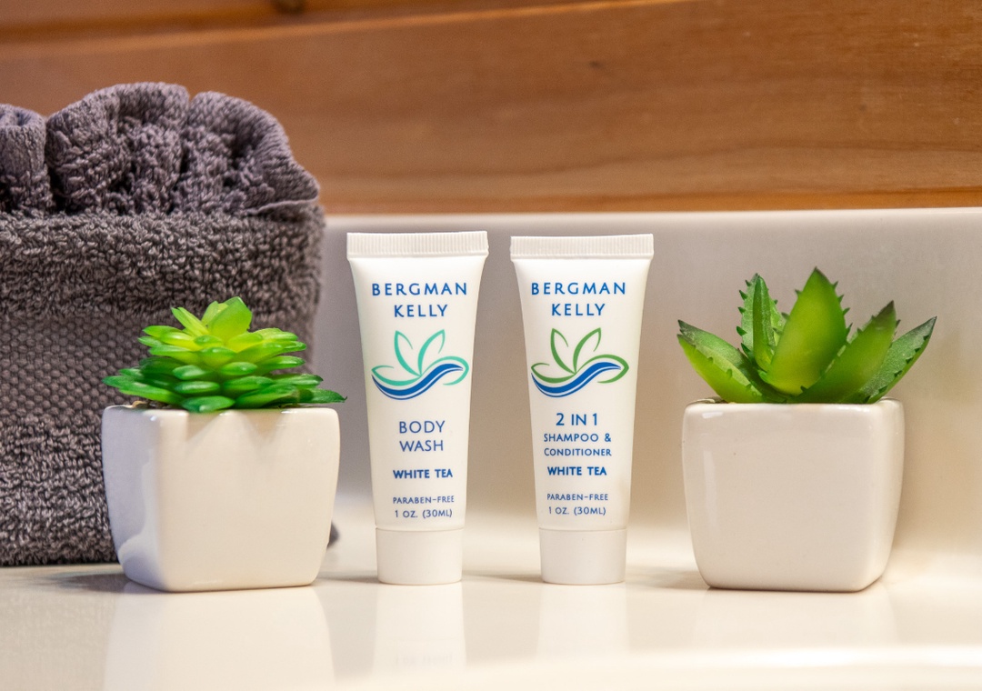 Complimentary starter toiletries, linens/towels, free WiFi, air conditioning, central heat, and full-size washer and dryer