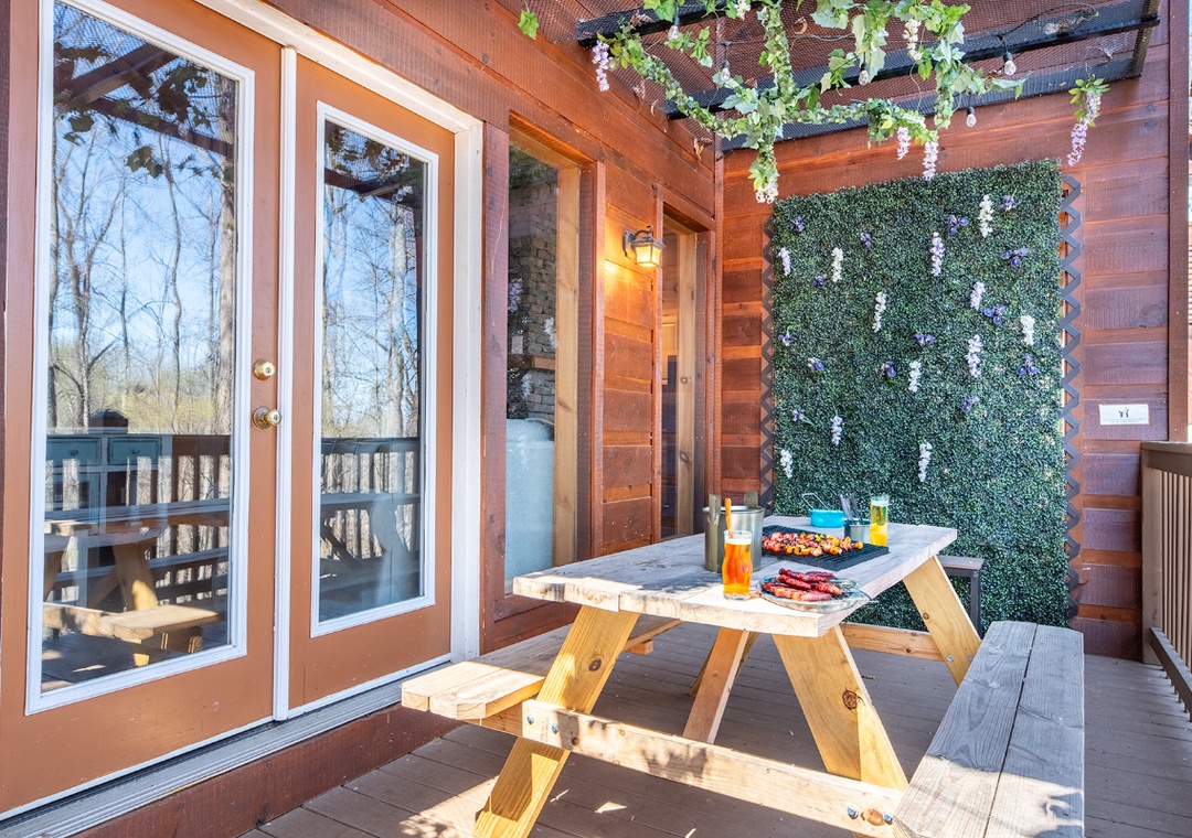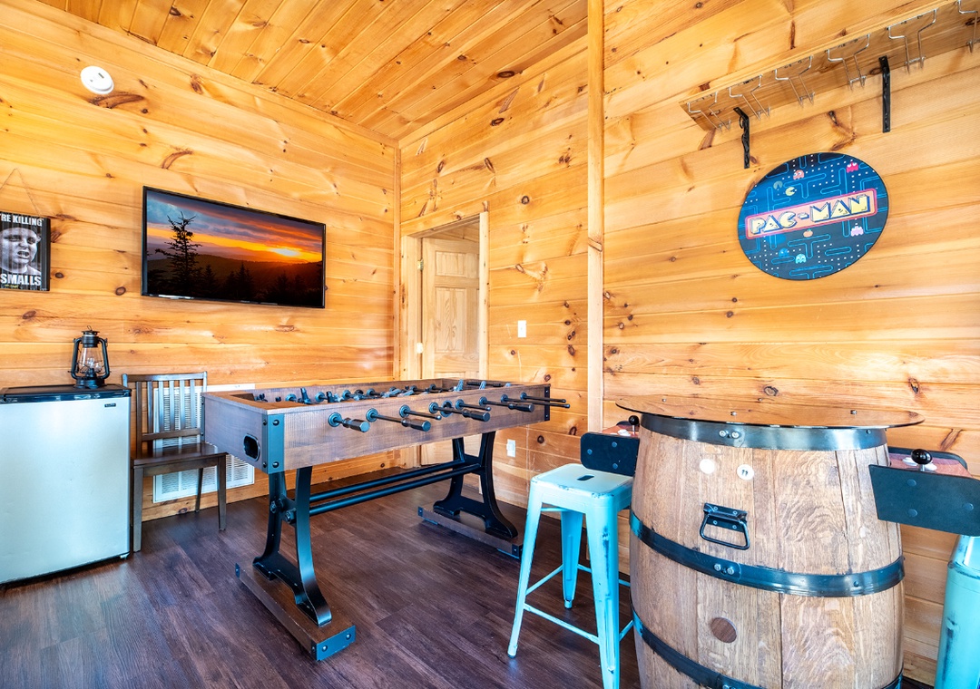 There’s never a dull moment at “Smoky Summit Stays”, with endless entertainment options both indoors and out. Featuring a 50-inch Insignia Fire TV for streaming movies and shows, an air hockey table for fast-paced excitement, a foosball table for energetic matches, and a multicade arcade machine packed with classic games. Upstairs on the loft, a pool table for friendly competitions awaits. For those who love to relax outdoors, the downstairs deck features a private hot tub where you can soak away stress while taking in the peaceful mountain scenery. Let the warm, bubbling water ease your muscles after a long day of hiking or exploring, or simply enjoy a quiet evening under the stars. The outdoor living space extends beyond the hot tub, with spacious wraparound decks offering multiple areas to take in the stunning surroundings. Enjoy a morning coffee in a rocking chair as the sun rises or sit back and listen to the peaceful sounds of nature. And don't forget to take advantage of the seasonal community swimming pool (typically open from Memorial Day to Labor Day), just a short distance away.