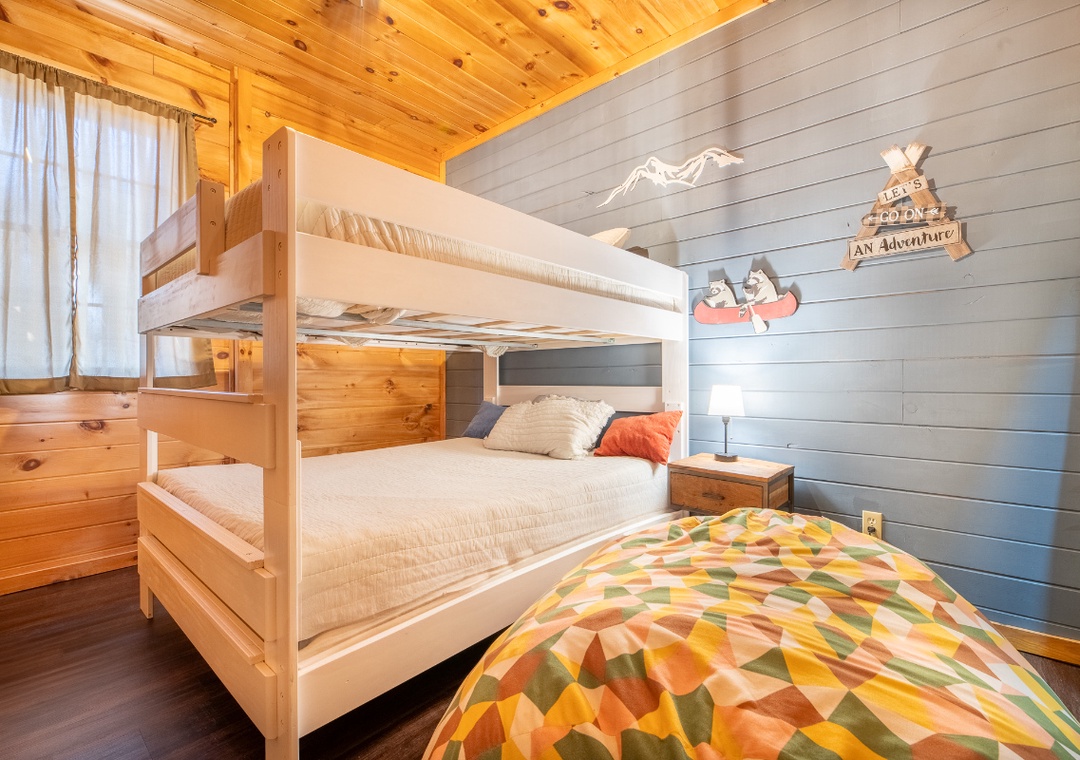 ✔ Bedroom #4 (Lower Level): Inviting Bedroom with a Queen-over-Queen Bunk Bed and Flat-screen TV; Access to a Full Bathroom with Stand Up Shower and Separate Jacuzzi