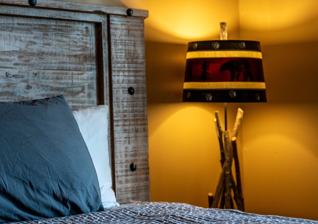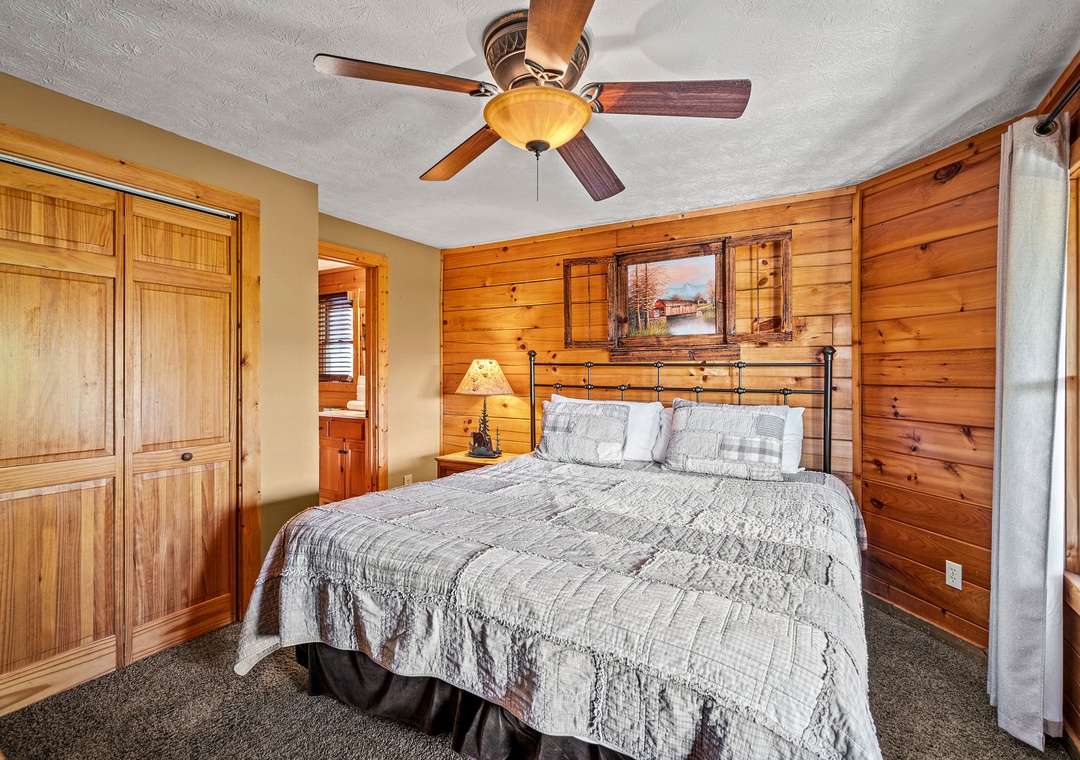 ✔ Bedroom #3 (Lower Level): Comfy bedroom with a King-size bed, Flat-screen TV, and access to a full bathroom with a stand-up shower