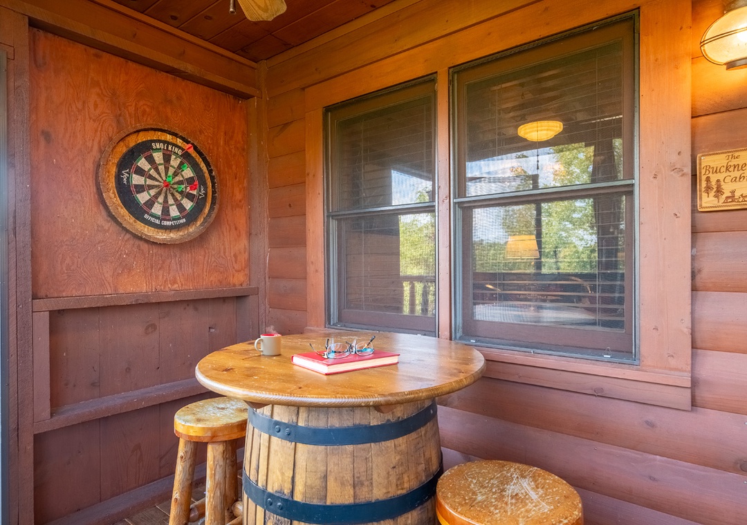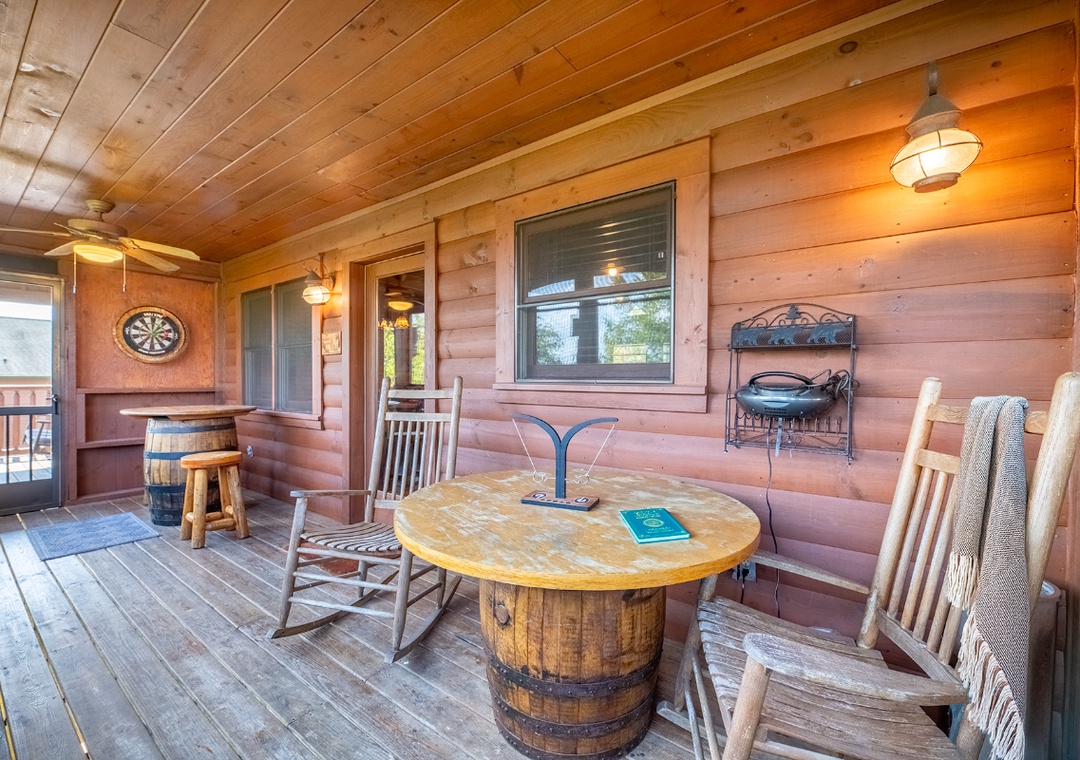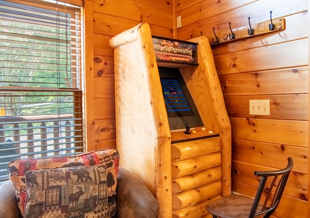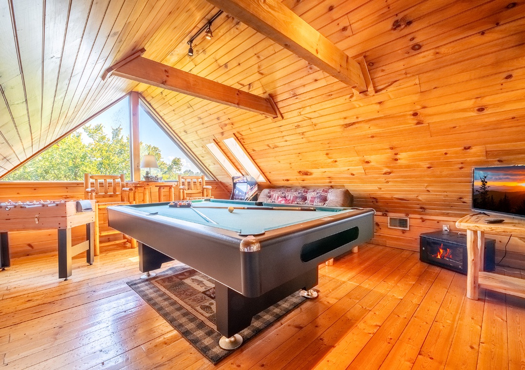Designed for fun, laughter, and unforgettable memories, "Southern Style" offers something for everyone. Out front, a park-style grill invites you to fire up some burgers or steaks and enjoy a good old-fashioned Smoky Mountain cookout. Inside, you’ll find a propane fireplace, a large flat-screen TV, and a multicade that brings a blast of nostalgia with all the classic games you know and love. Head upstairs to the spacious game loft, where the excitement continues. Take your best shot on the pool table, master your skills at the foosball table, or switch things up with another multicade arcade for even more retro gaming action. When you’re ready to take the fun outdoors, the back deck delivers a full lineup of entertainment and relaxation. Soak in the steaming hot tub as you watch the sun dip below the mountains, or catch your favorite show on the outdoor TV — yes, your private mountain deck has a TV, so you don’t have to miss the big game! Looking for something more interactive? Enjoy a round of cornhole or a few friendly matches on the dartboard, all while surrounded by the peaceful sounds of the Smokies. For families with children, the highlight might just be the kids’ play set on the deck, providing a safe and fun space for little ones to play while the grown-ups relax nearby. Located just a short drive from Sevierville and Pigeon Forge, you’ll also have easy access to world-class attractions like Dollywood, The Island, local distilleries, shopping, and mountain hiking trails.