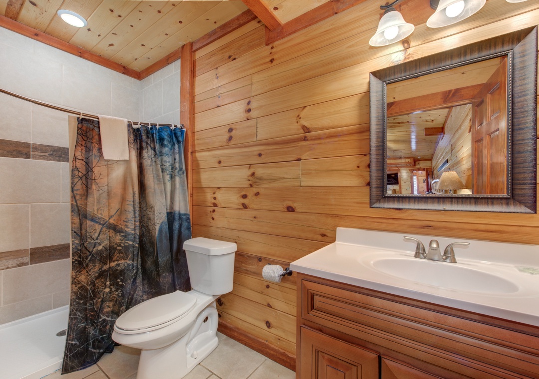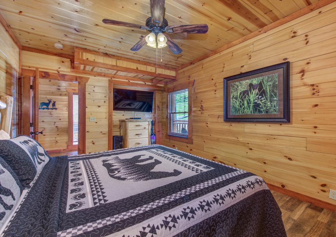 ✔ Bedroom #1 (Main Level): Spacious Bedroom with a King-sized Bed and a Flat-screen TV; Attached Full Bathroom with Stand Up Shower