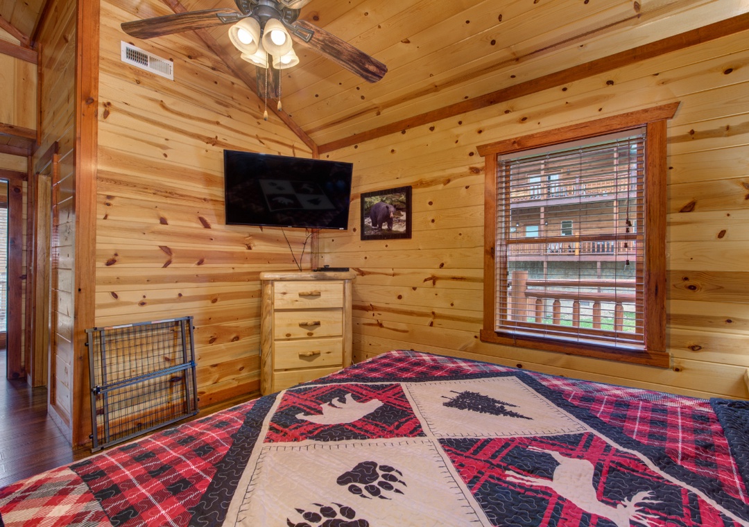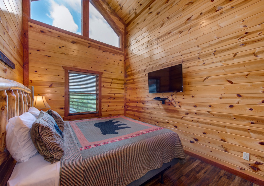 ✔ Bedroom #3 (Upper Level): Relaxing Bedroom with a King-sized Bed and a Flat-screen TV; Access to a Full Bathroom with Stand Up Shower