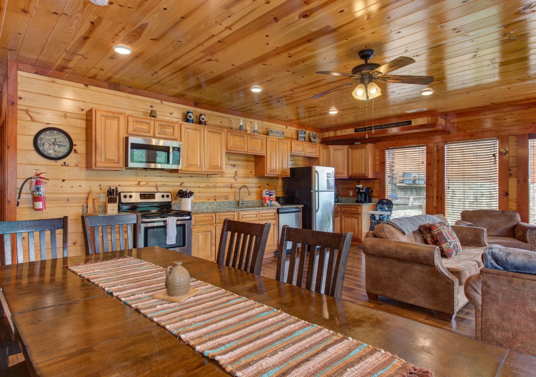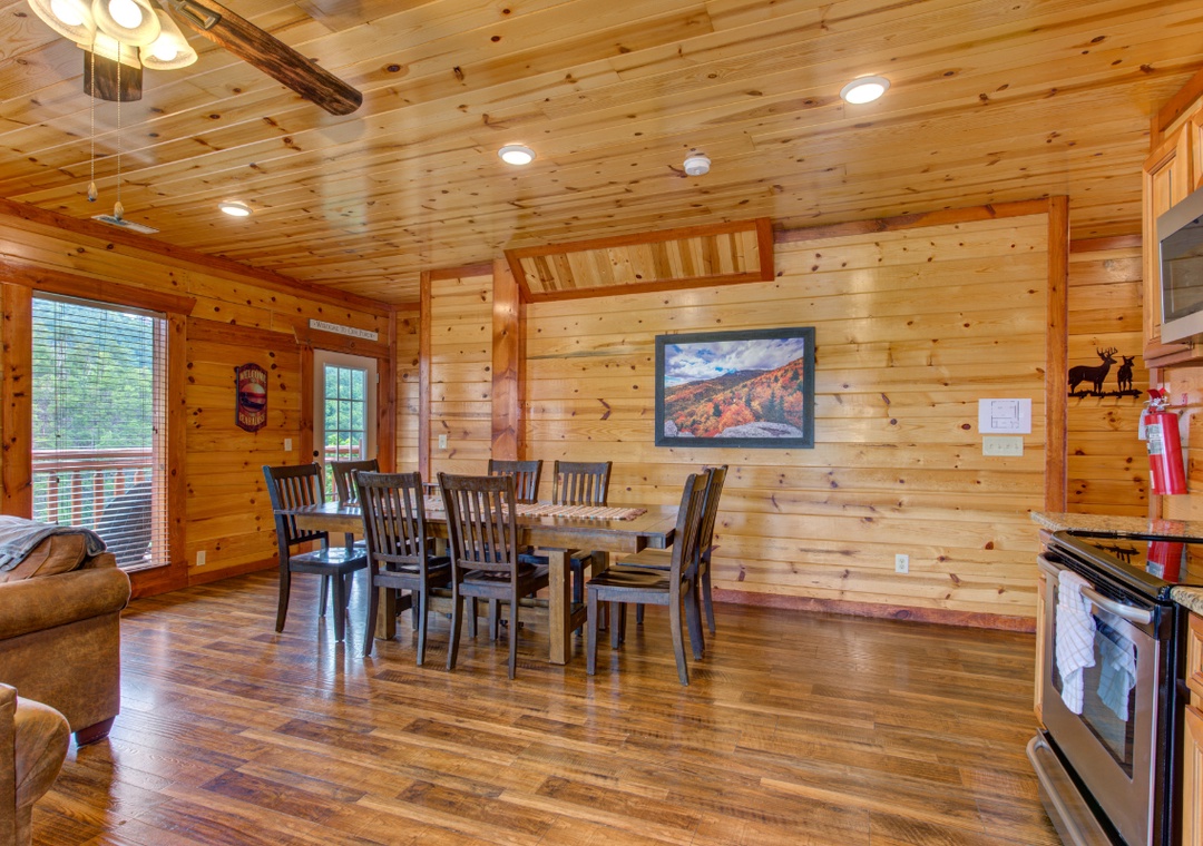 The fully-equipped kitchen boasts modern amenities, making it easy to prepare delicious meals for your family or friends. Well-appointed with a full-sized refrigerator, dishwasher, stove, microwave, and other kitchen appliances perfect for making breakfast, lunch, or dinner throughout your stay! All pots, pans, glasses, plates, silverware, etc., are also there for you! Gather around the inviting dining area with large windows to share stories and laughter, as it invites you to savor each bite while taking in the natural beauty of the surroundings.