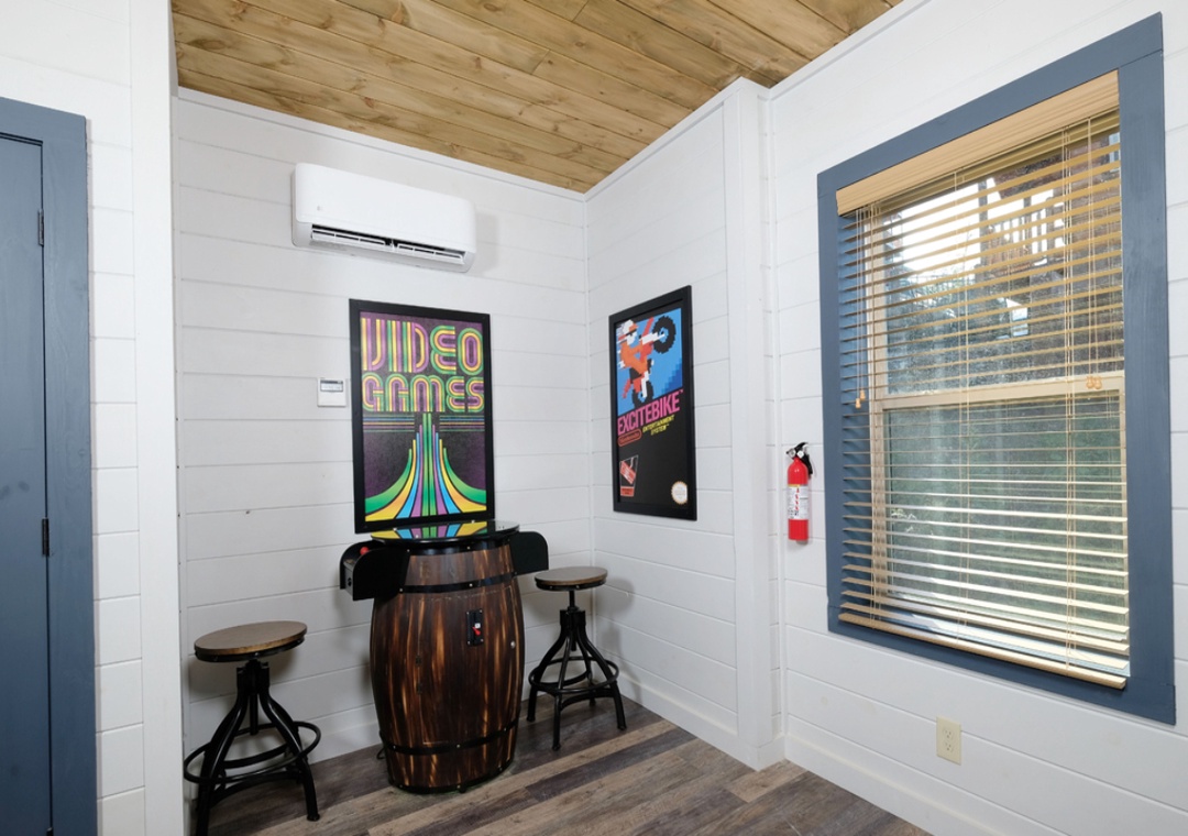 Start your adventure on the lower floor, where the star attraction awaits: your very own private indoor swimming pool! Dive in for a swim or simply relax in the poolside seating area while soaking in the refreshing ambiance. Adjacent to the pool, the game room beckons with a pool table for friendly competitions and a barrel-style arcade unit for nostalgic gaming moments. As you play, enjoy entertainment on the mounted flatscreen TV, ensuring that every moment spent indoors is filled with excitement and laughter. Outside, the deck is equipped with rocking chairs offering panoramic views of the surrounding mountains. Sip your morning coffee as you watch the sunrise or unwind with a glass of wine under the stars. And no vacation is complete without a soothing soak in the hot tub, where you can relax and rejuvenate while taking in the beauty of the Smokies. With a variety of entertainment options both indoors and out, Splash ‘N Love Shack ensures that every moment of your stay is filled with laughter, joy, and unforgettable memories.