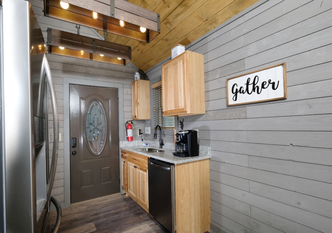 Indulge your culinary passions and create unforgettable meals in the stylish and fully equipped kitchen of Splash ‘N Love Shack! Well-appointed with a full-sized refrigerator, dishwasher, stove, microwave, and other kitchen appliances perfect for making breakfast, lunch, or dinner throughout your stay! All pots, pans, glasses, plates, silverware, etc. are also there for you! Share laughter and conversation as you gather around the dining table, savoring your culinary creations and creating cherished memories.